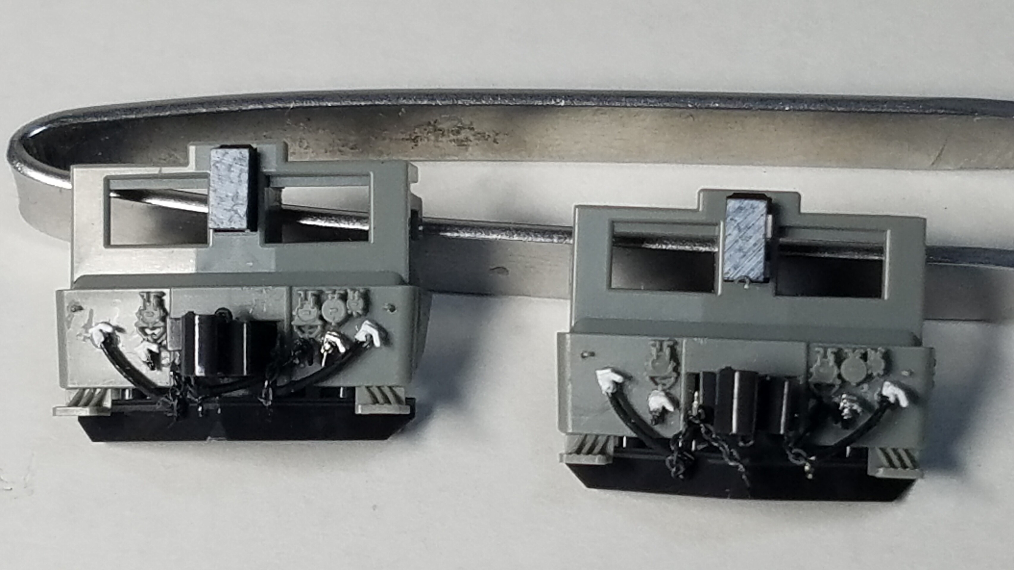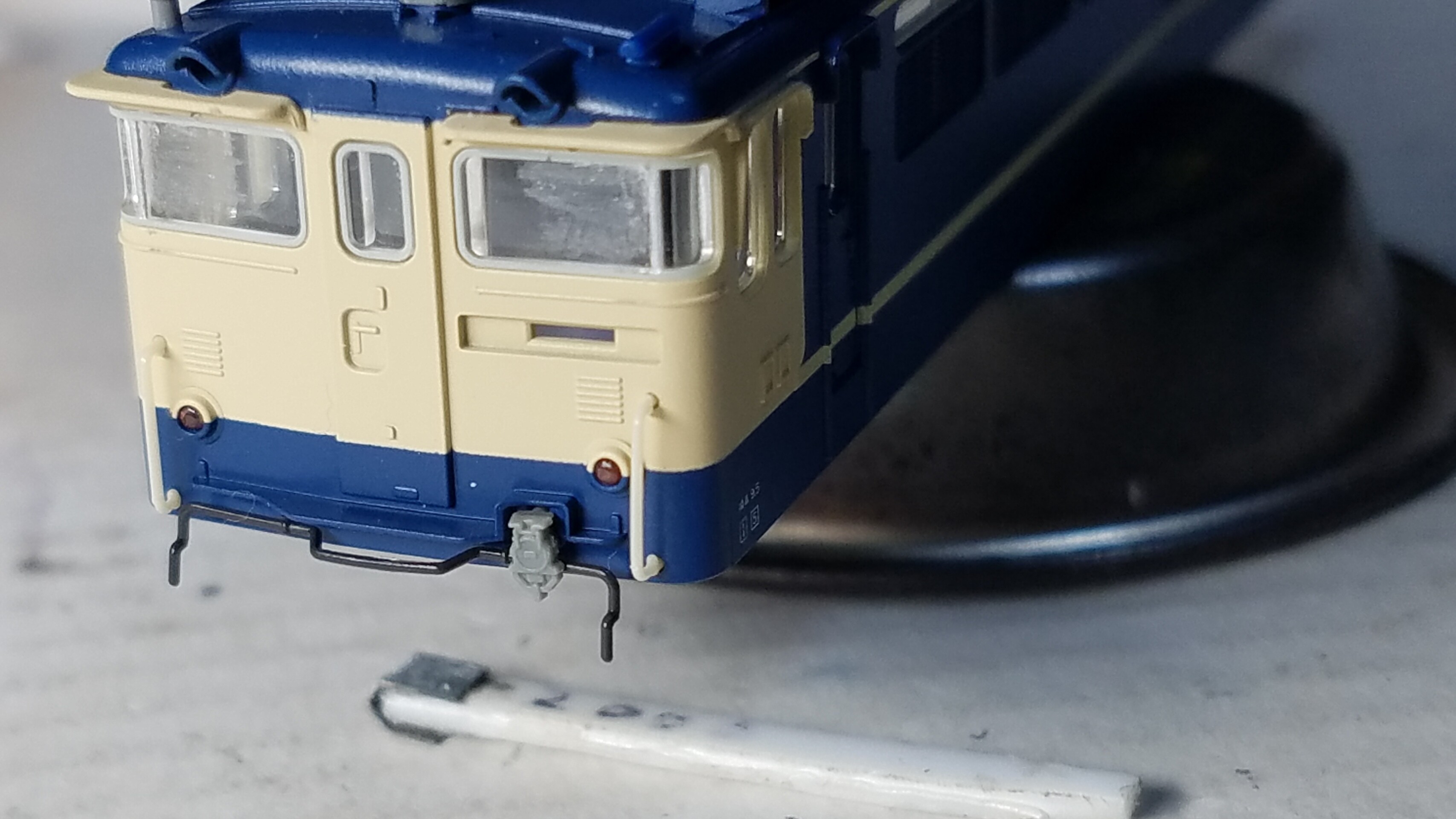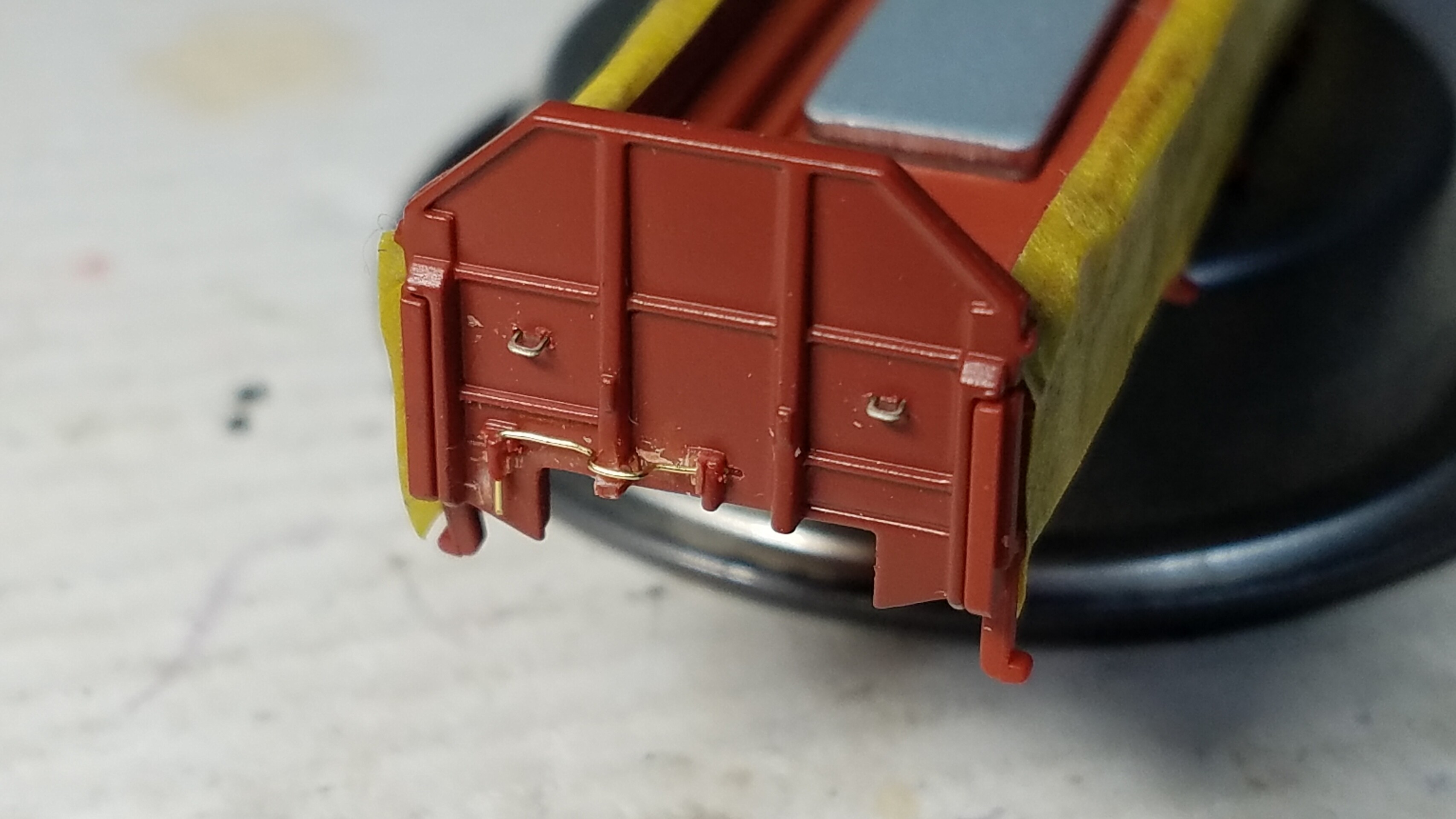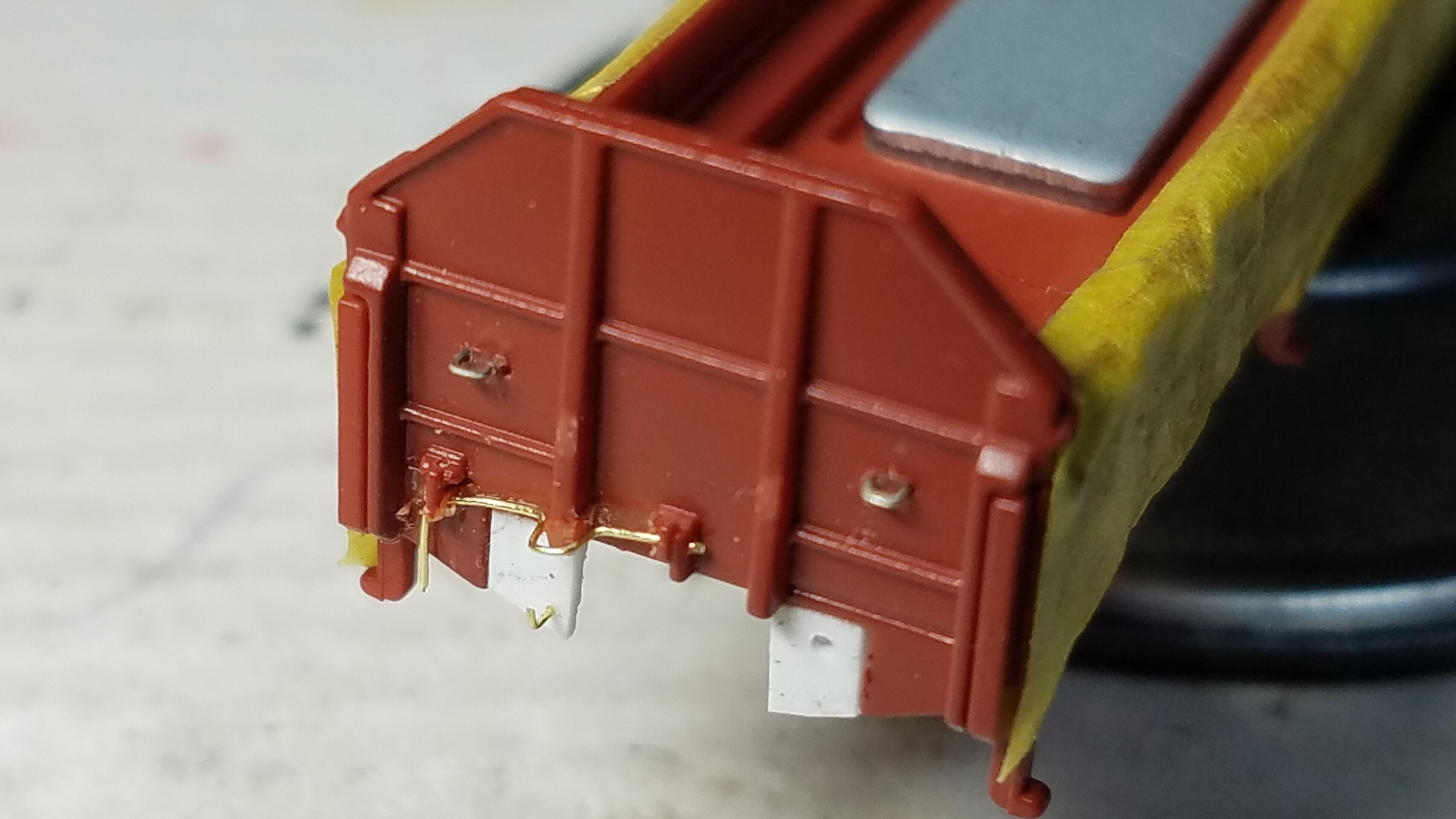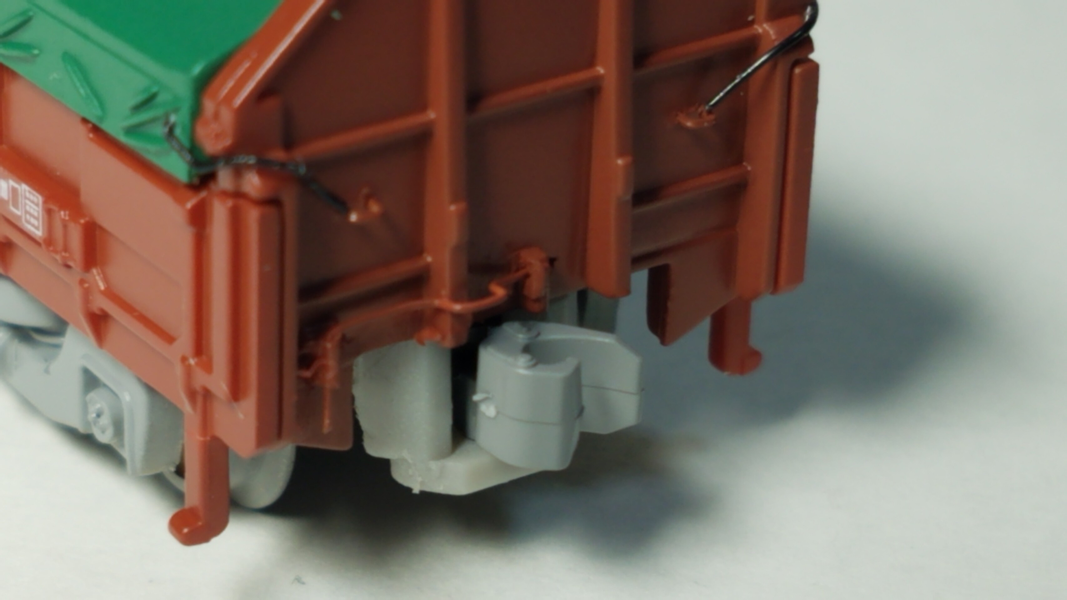 そしてカプラーの開口部の両脇に0.3mmピンバイスで穴を開けL字に曲げた0.2mm真鍮棒を取り付けました