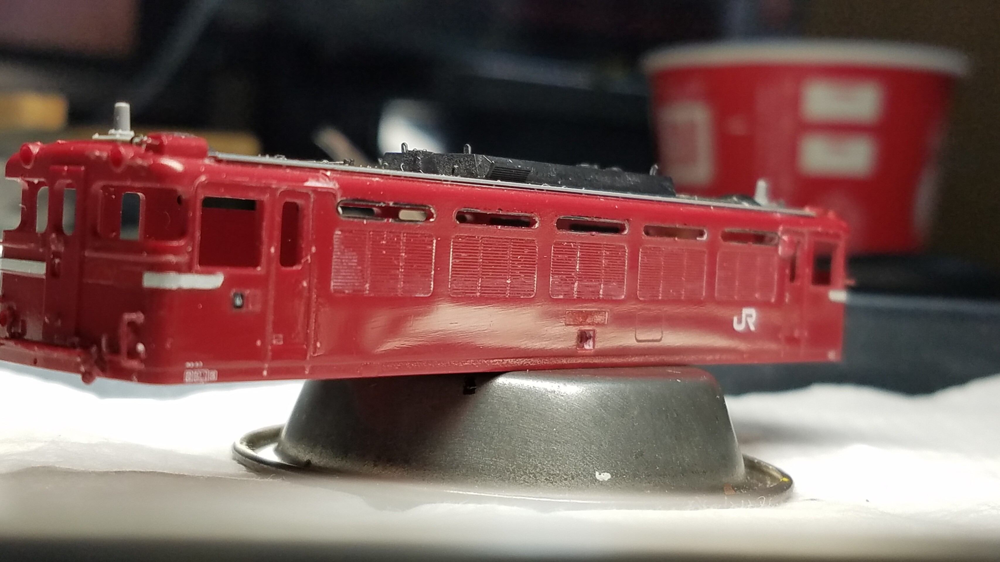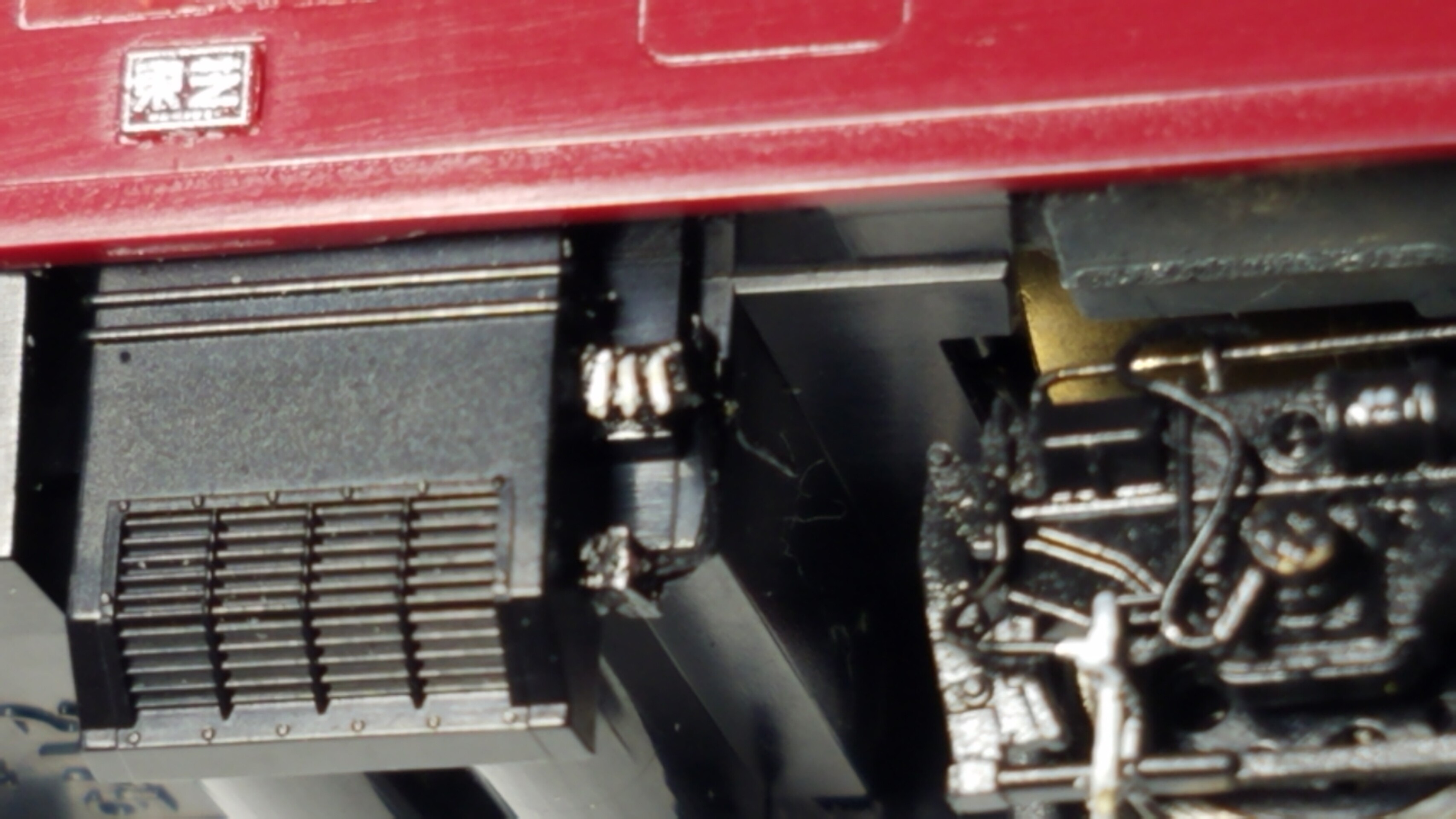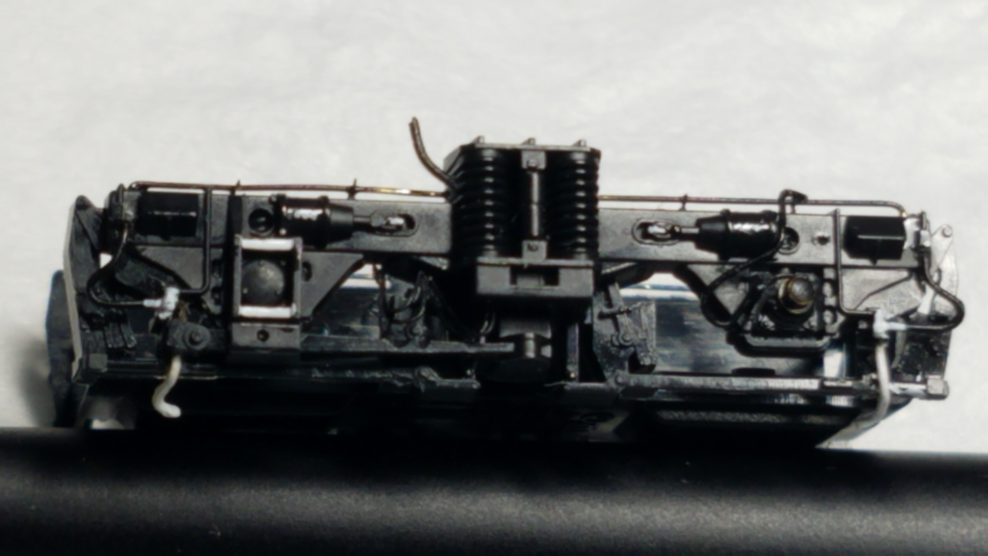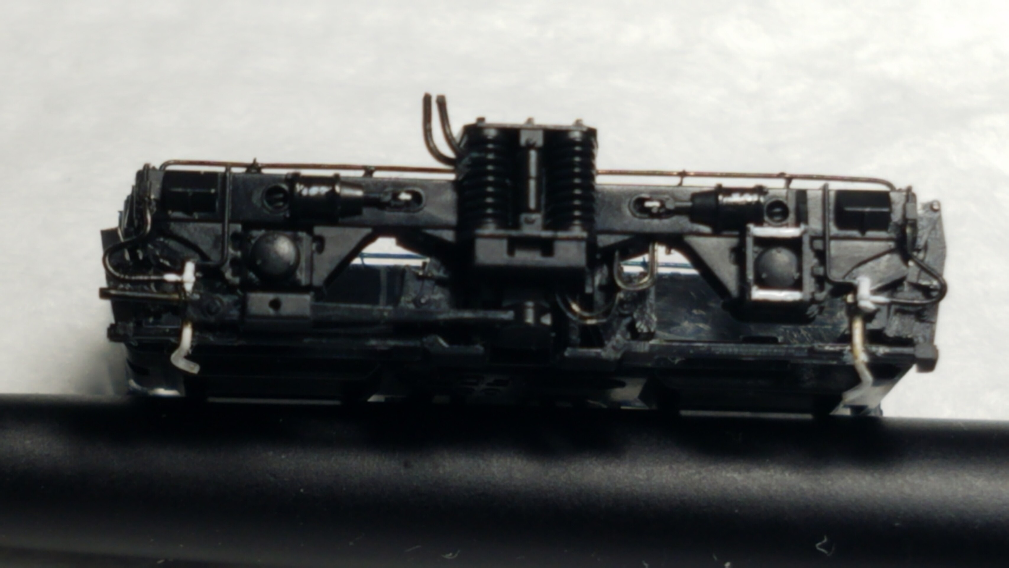 パンタグラフはガイアのマルチプライマーを原液のままエアブラシで吹いて、乾燥後鉄道模型用カラーねずみ色1号で塗装しておきました