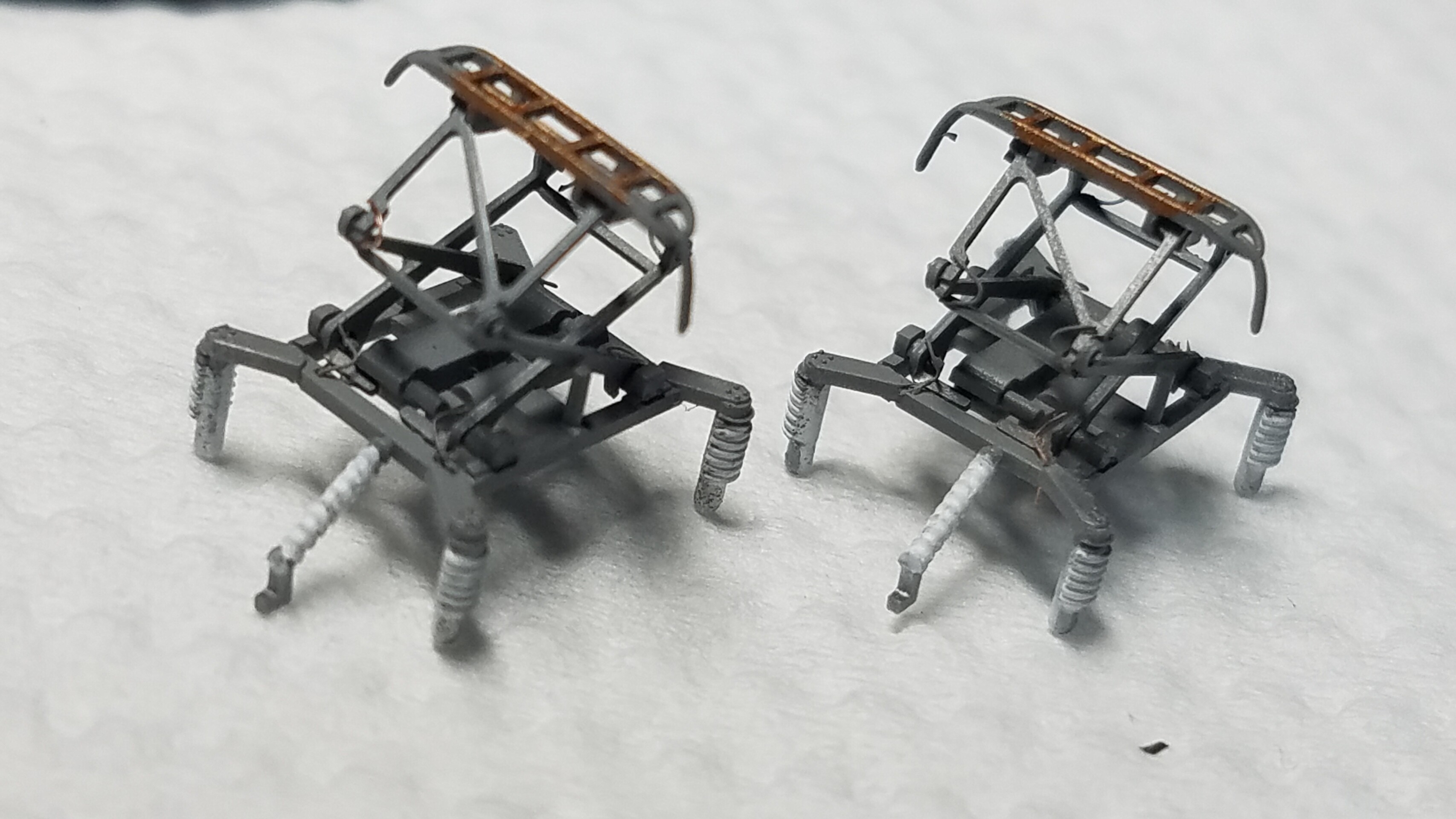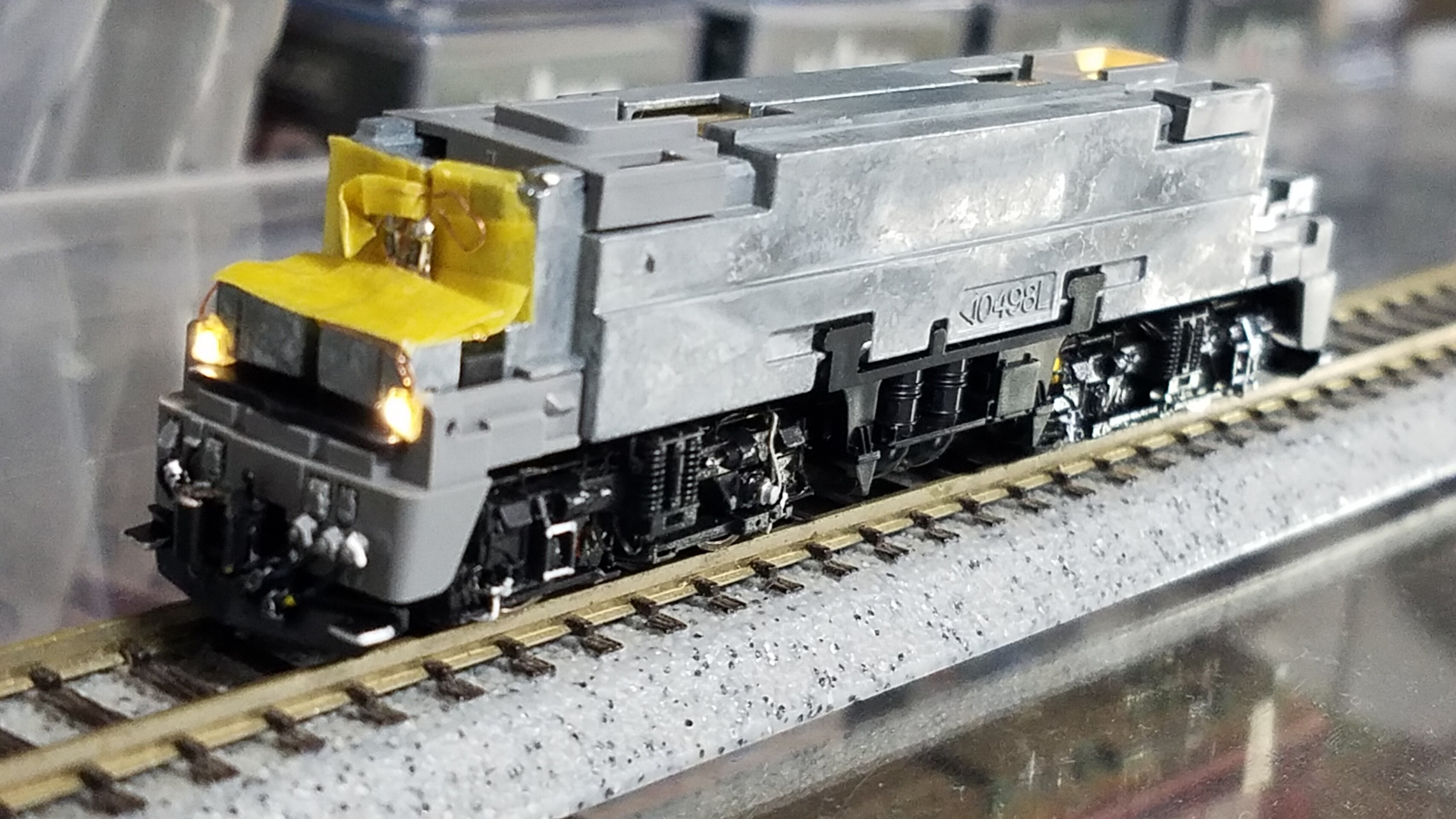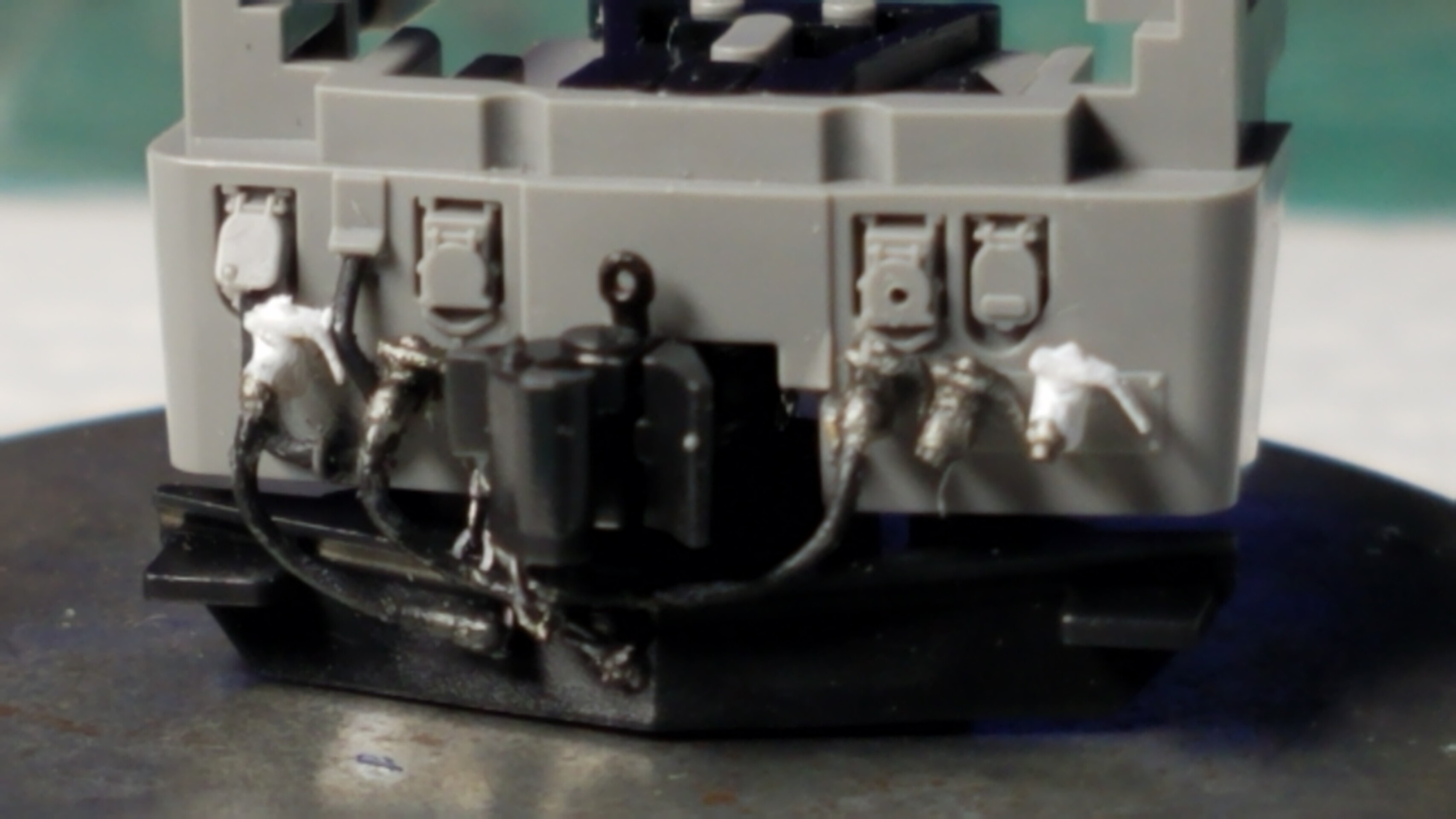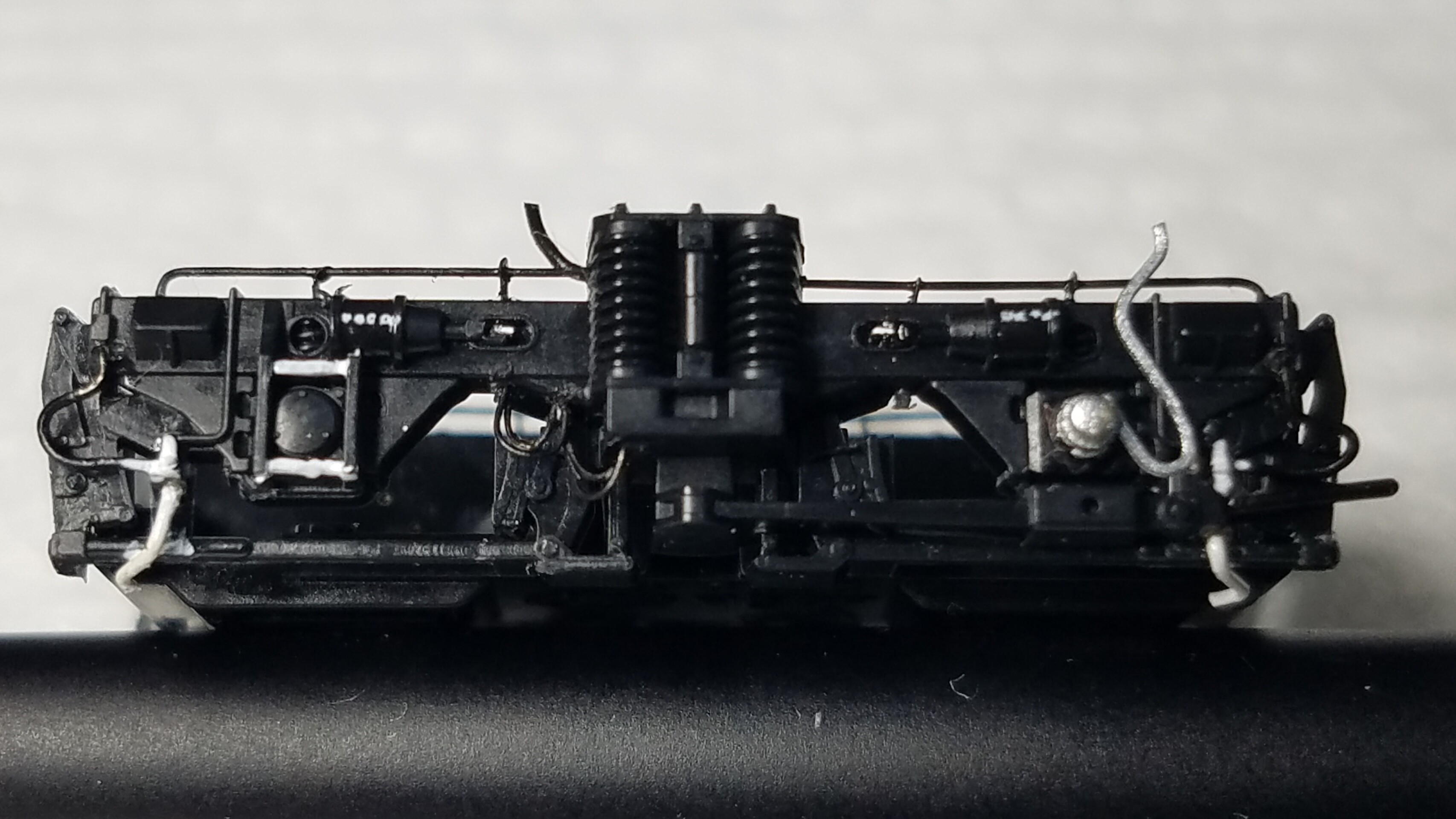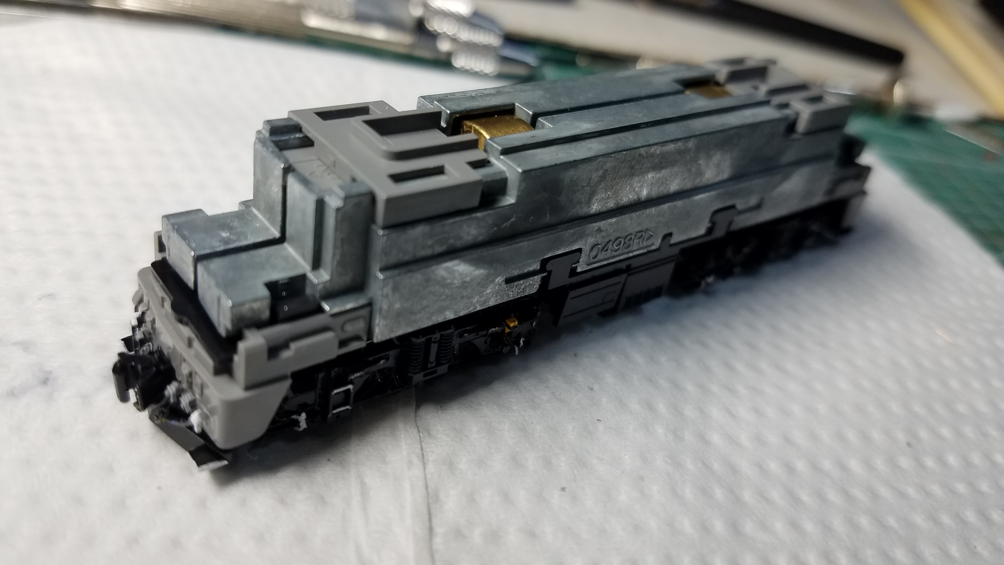 パンタグラフはガイアのマルチプライマーを原液のままエアブラシで吹いて、乾燥後鉄道模型用カラーねずみ色1号で塗装しておきました