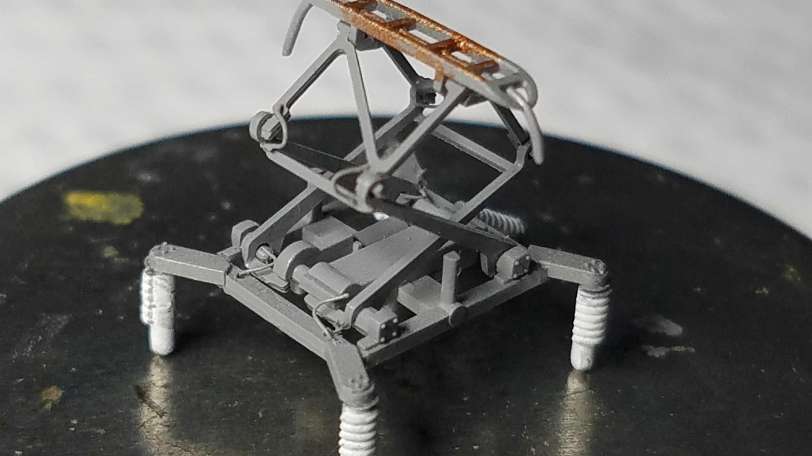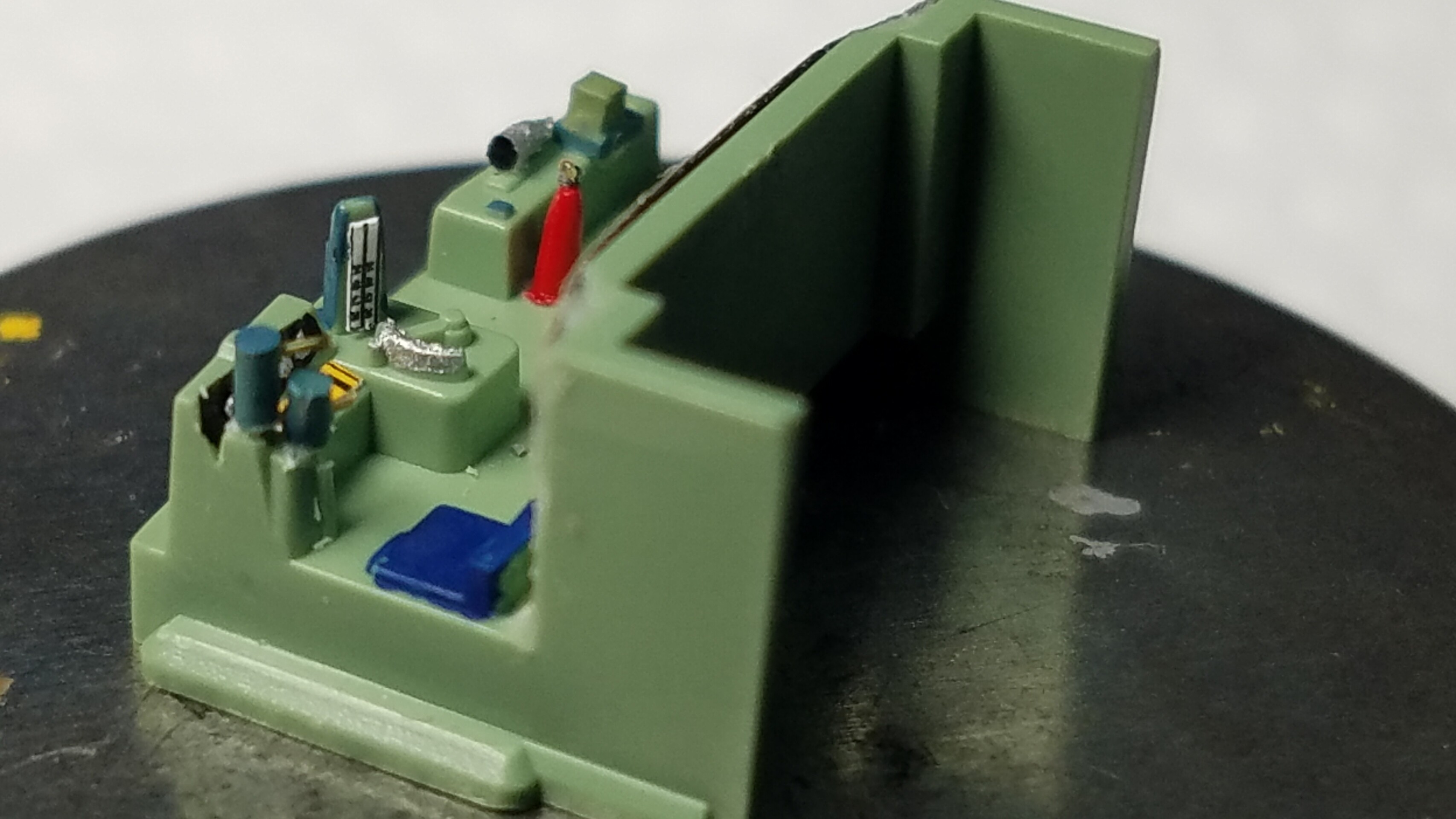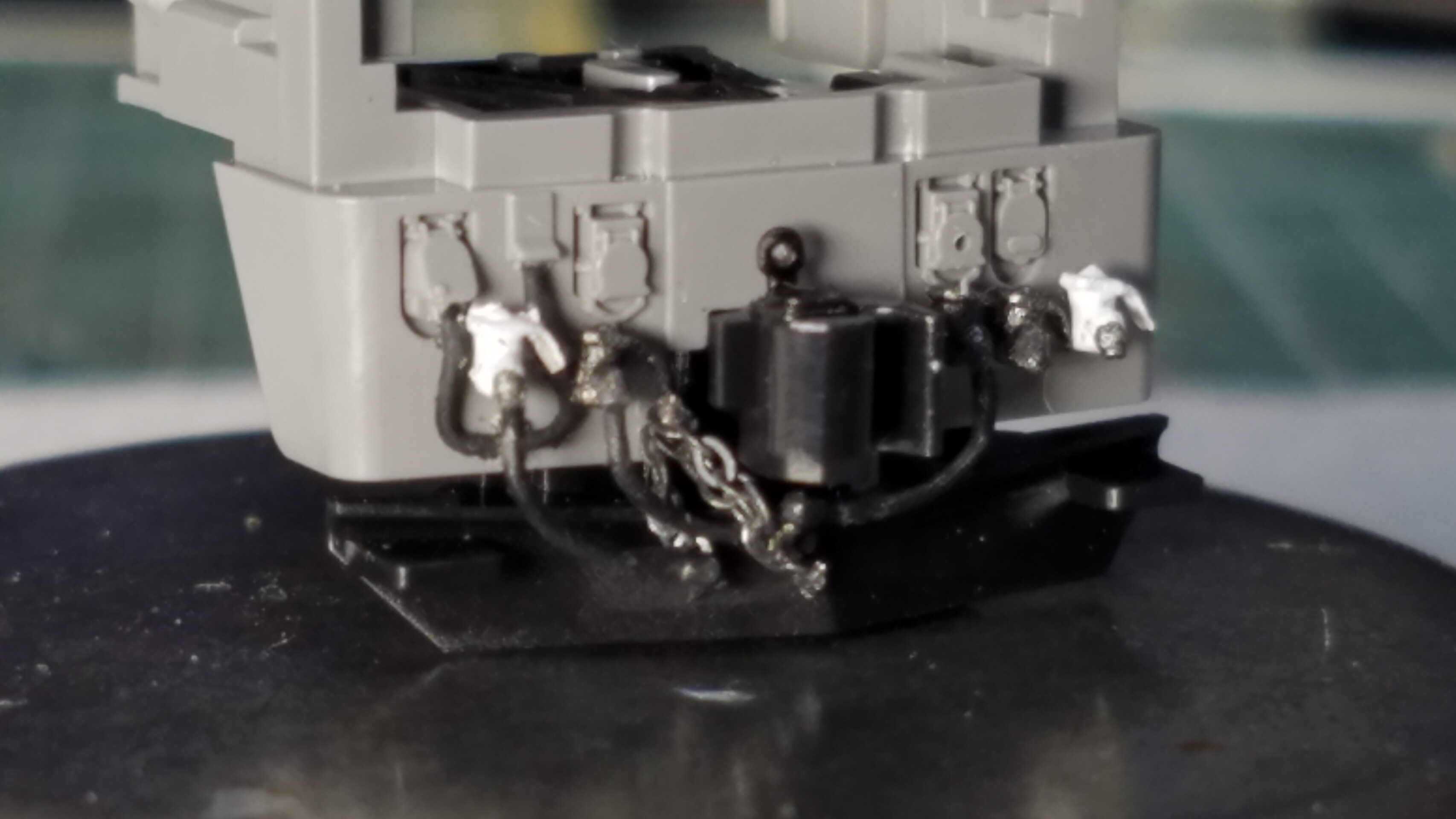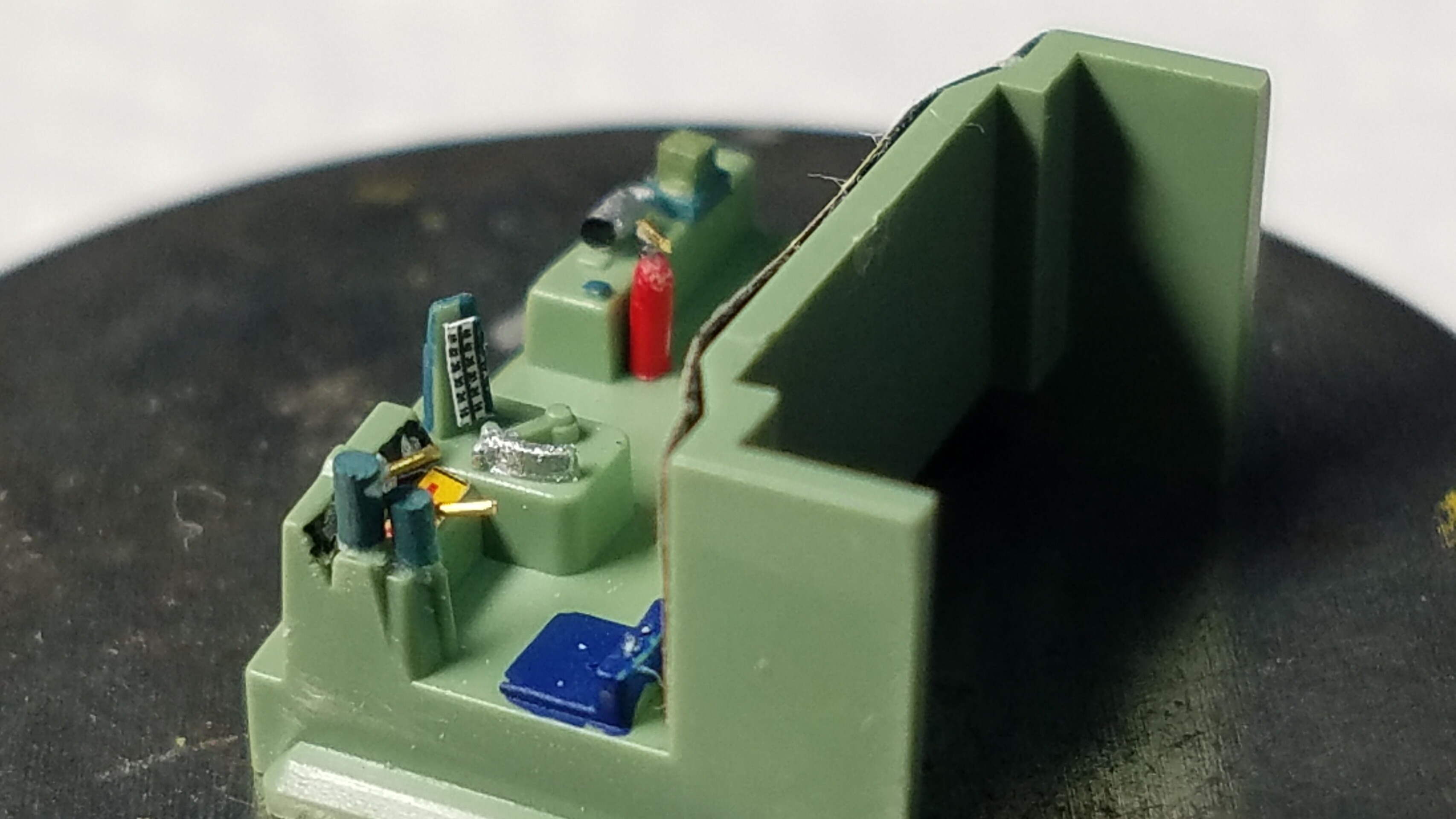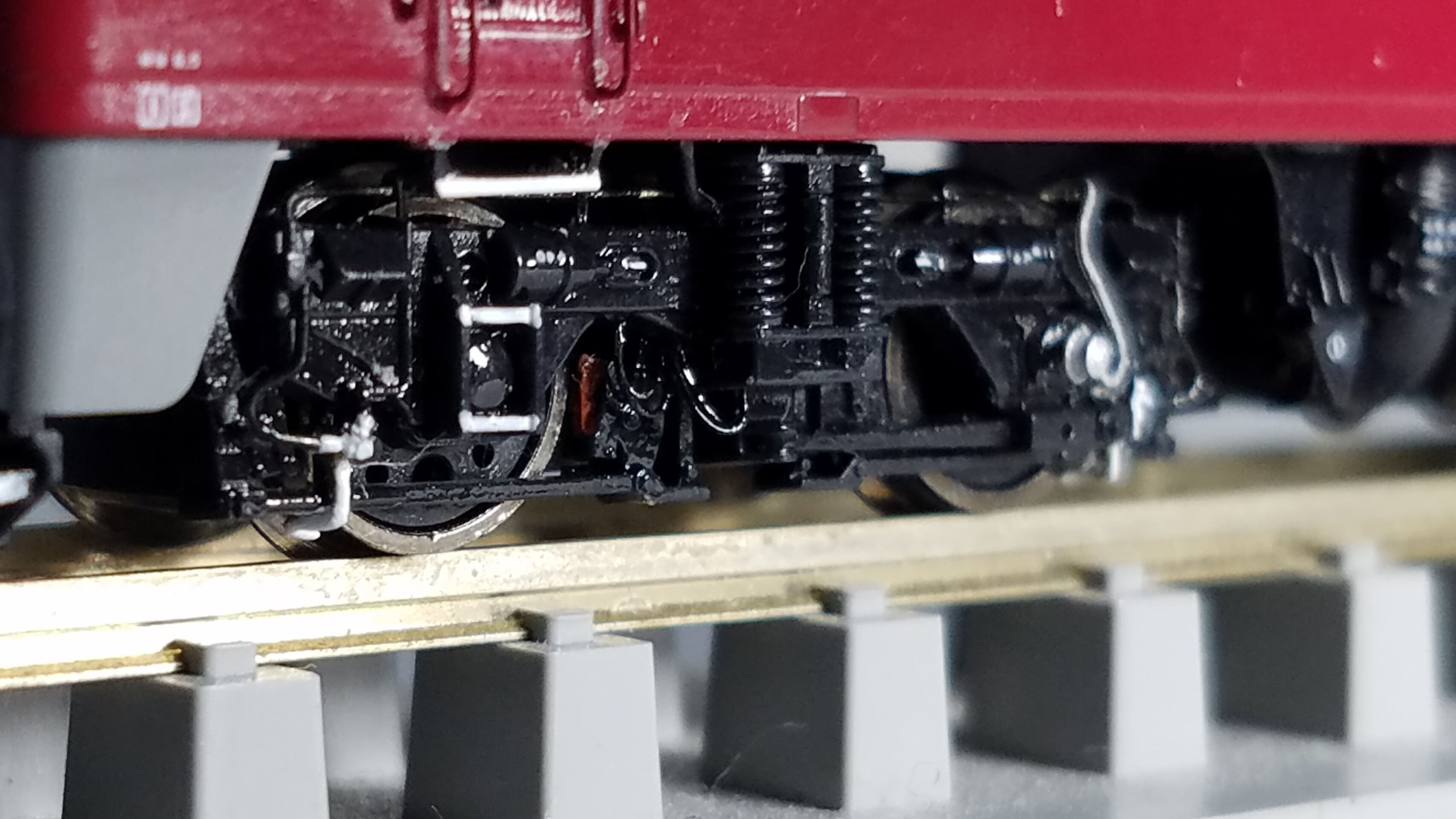 パンタグラフはガイアのマルチプライマーを原液のままエアブラシで吹いて、乾燥後鉄道模型用カラーねずみ色1号で塗装しておきました