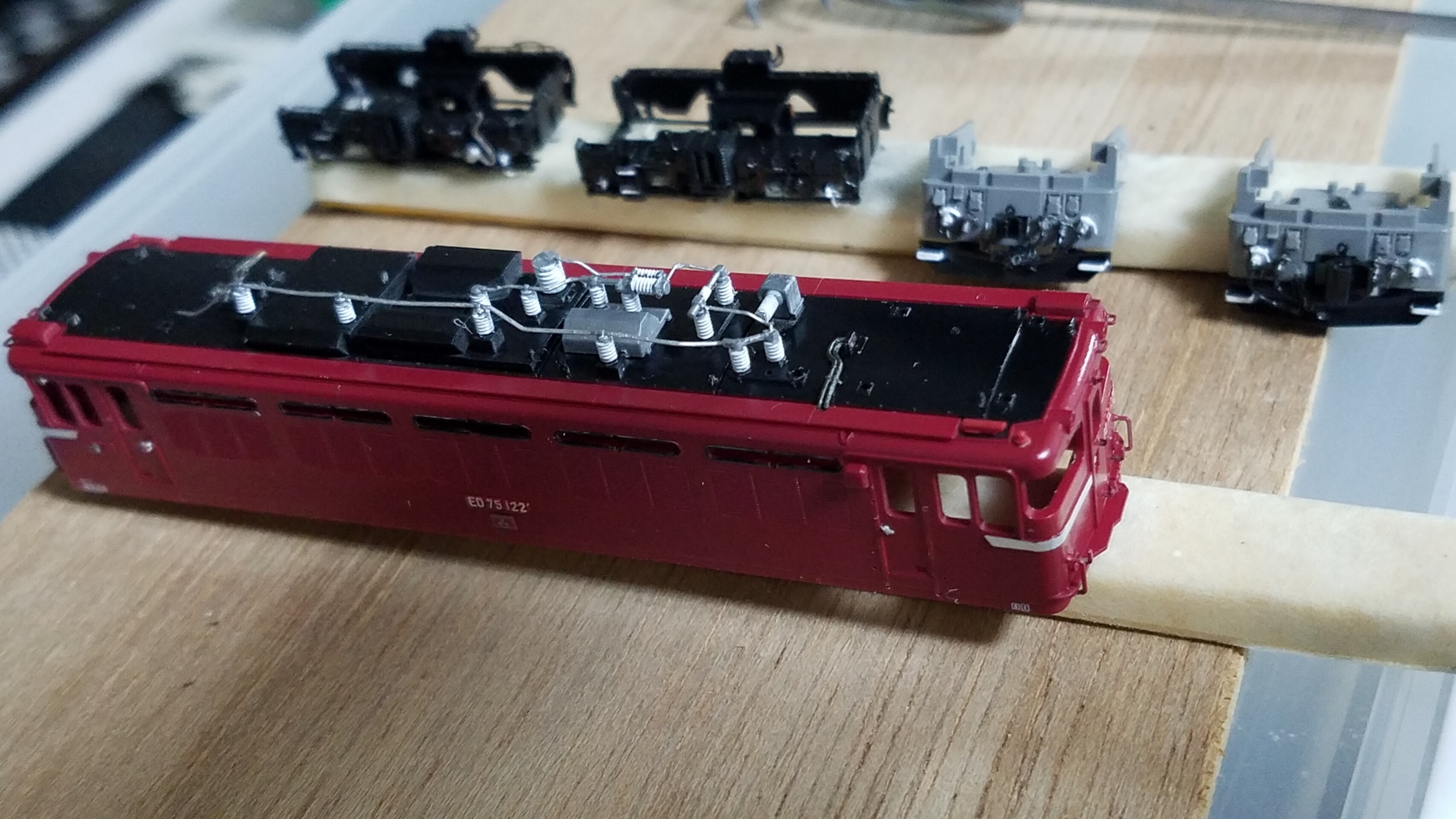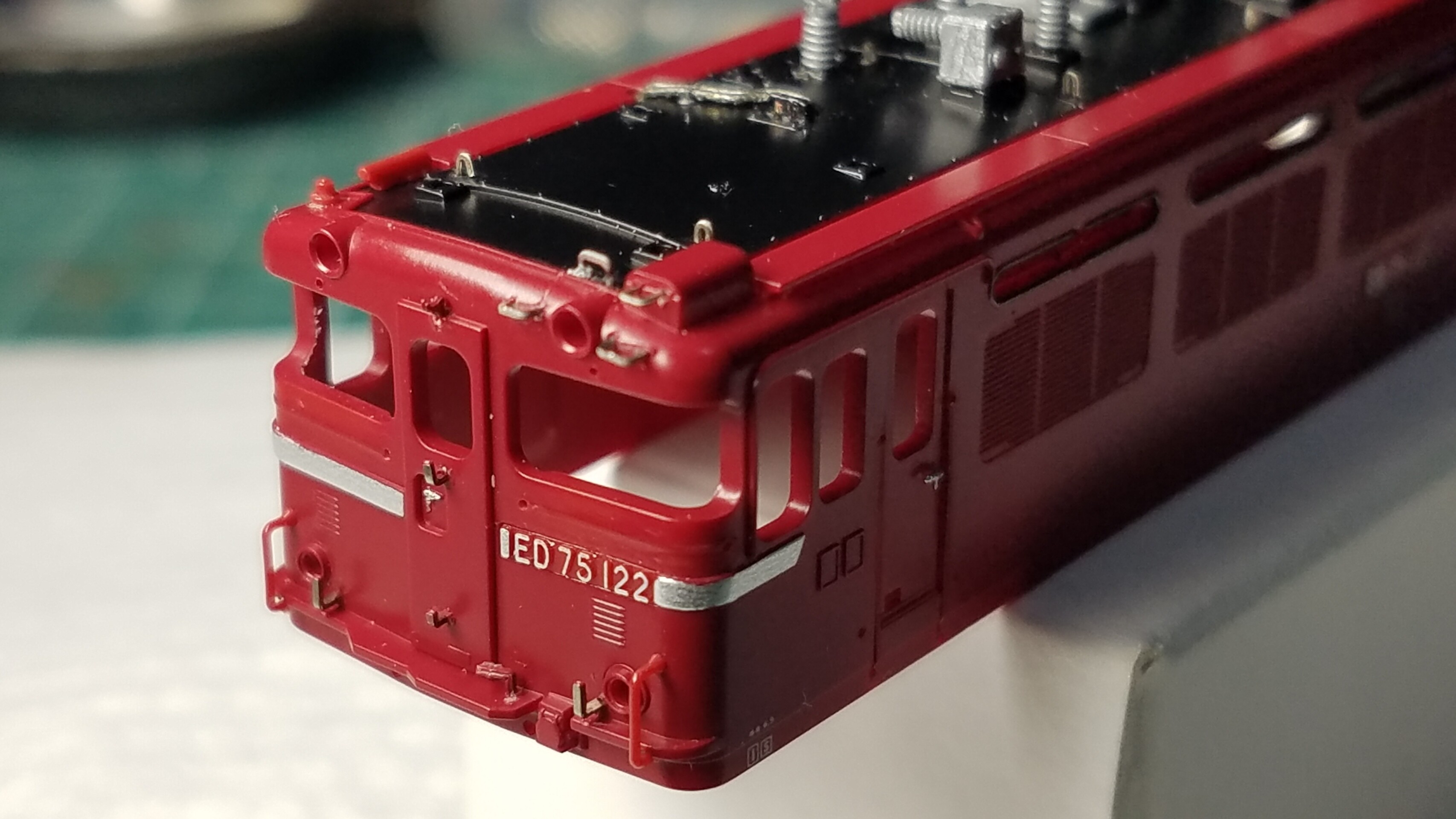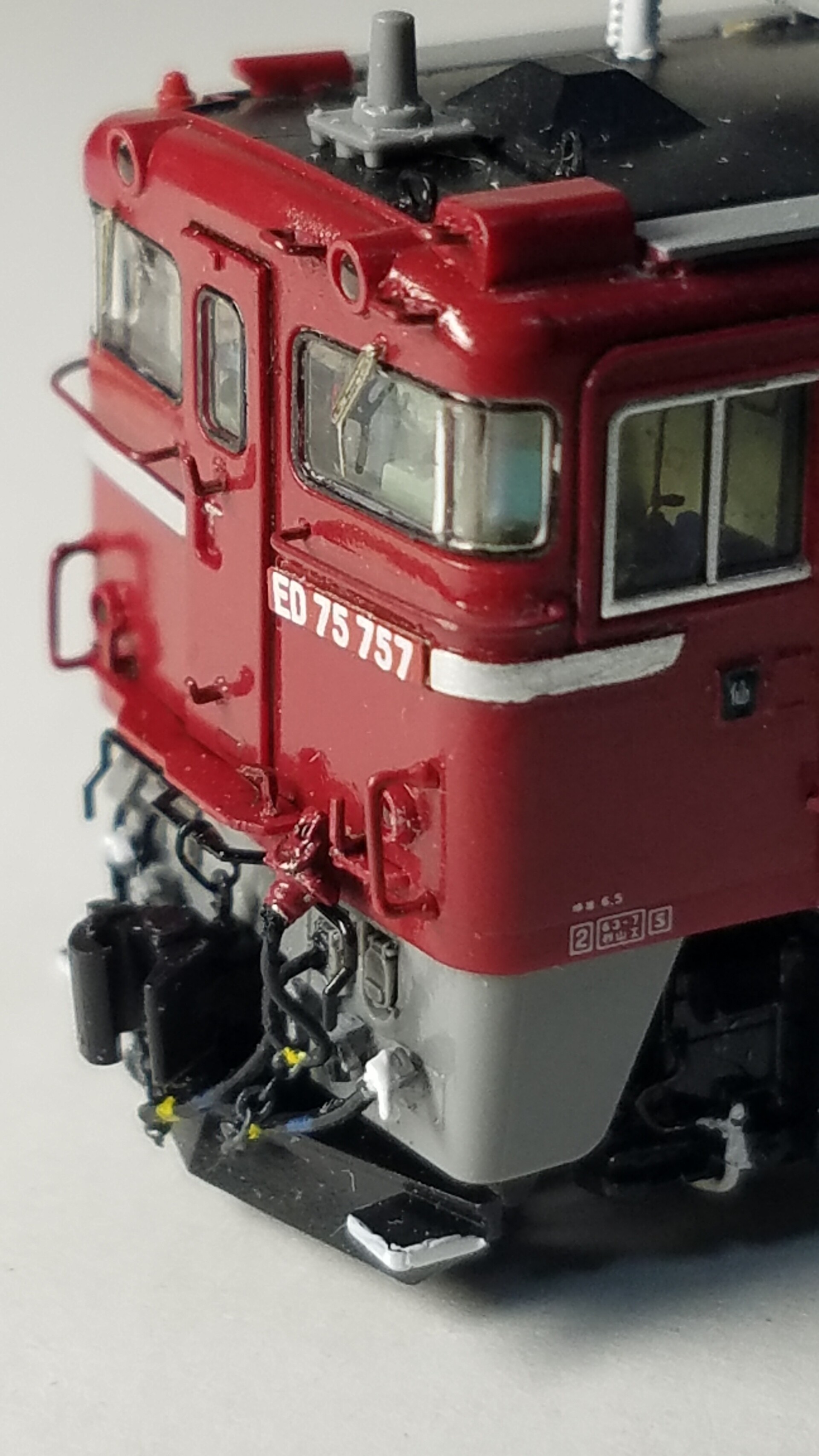 屋根上、おでこの手すりは銀河モデルさんのN-260 ED75前面手すりのものです。