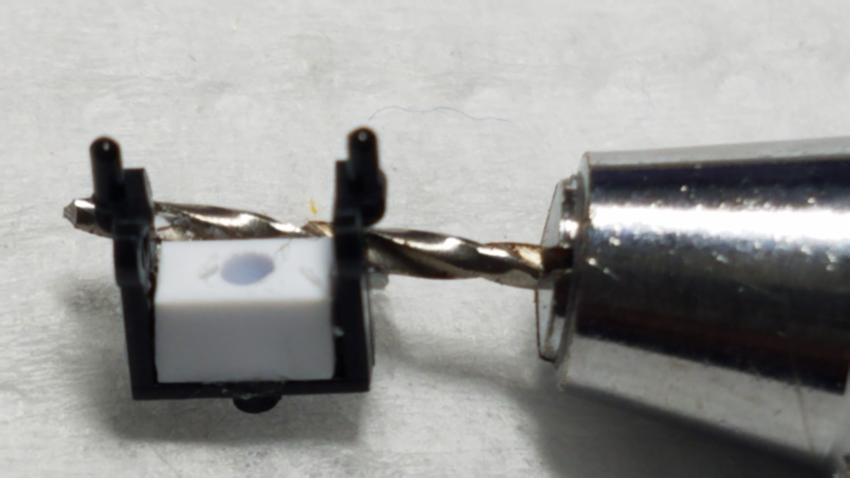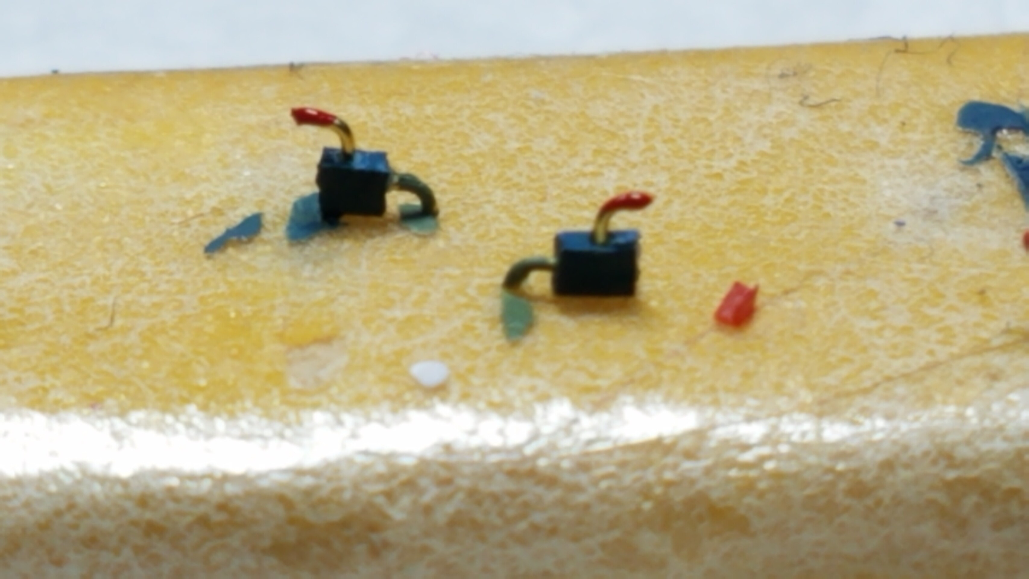 傷を消すのに厚めのプライマー板を切り出したものの先端にサンドペーパーを貼り付けた自作サンダーで磨きます