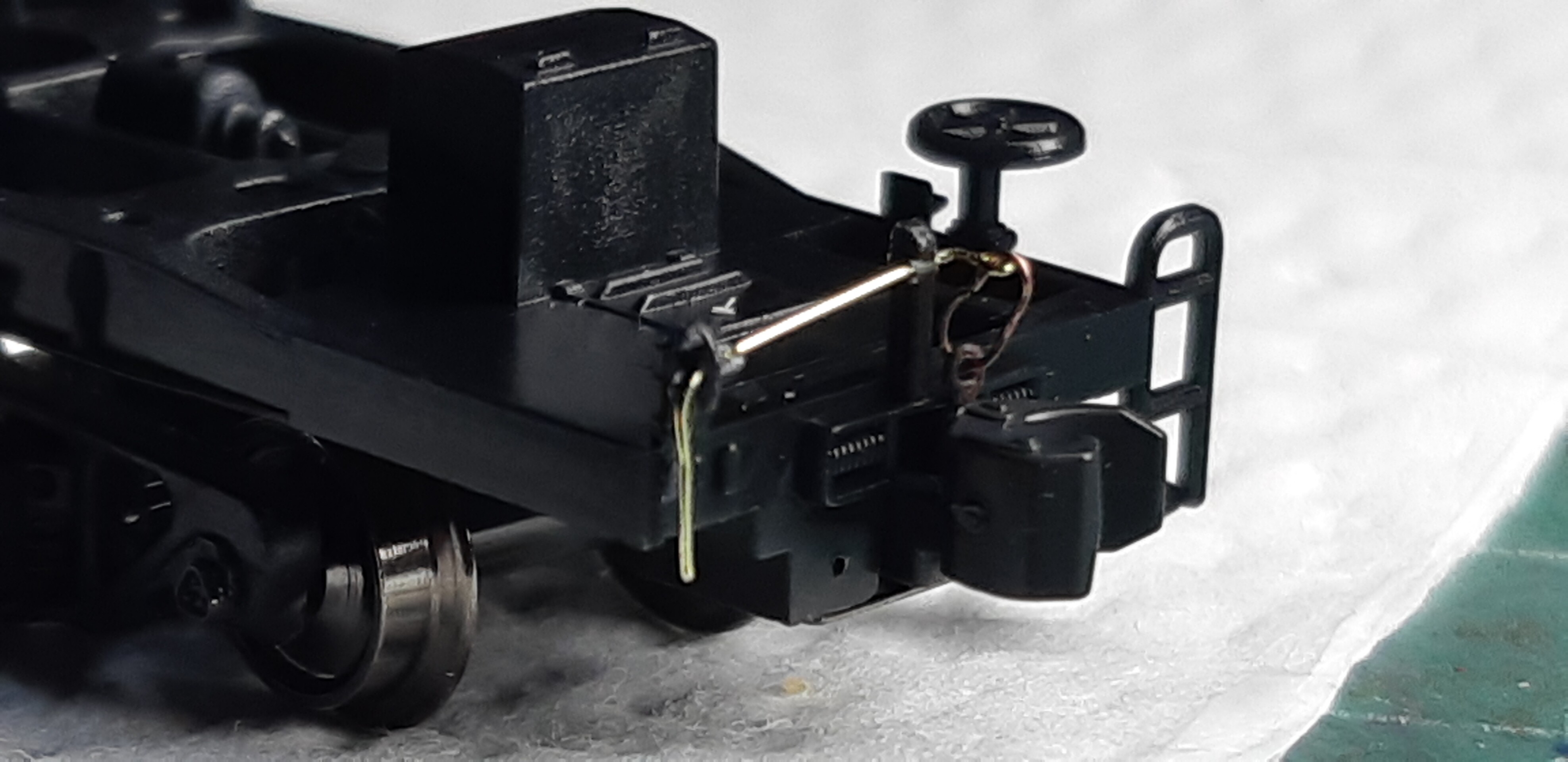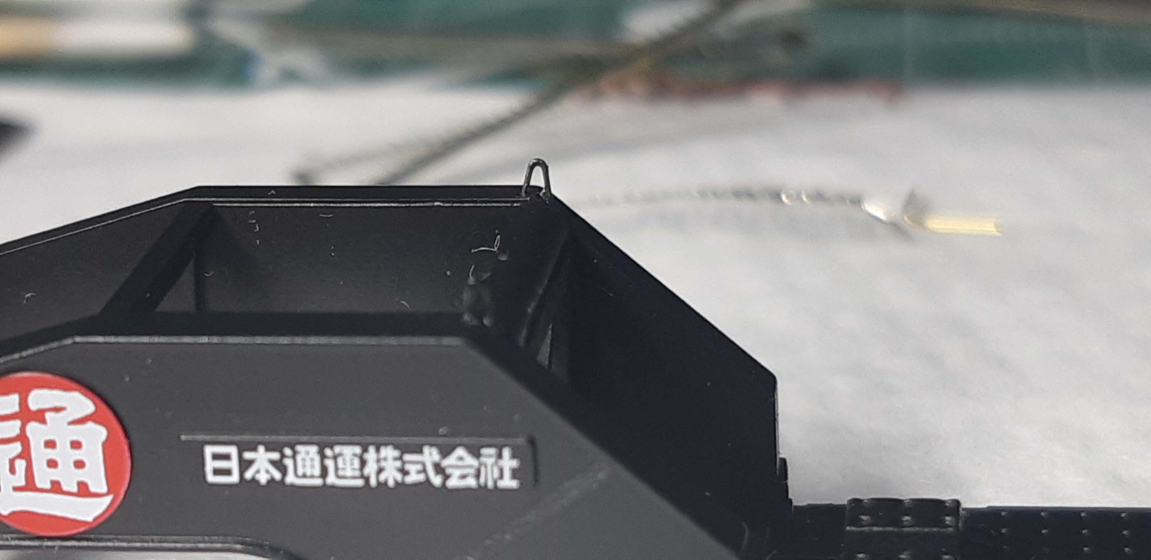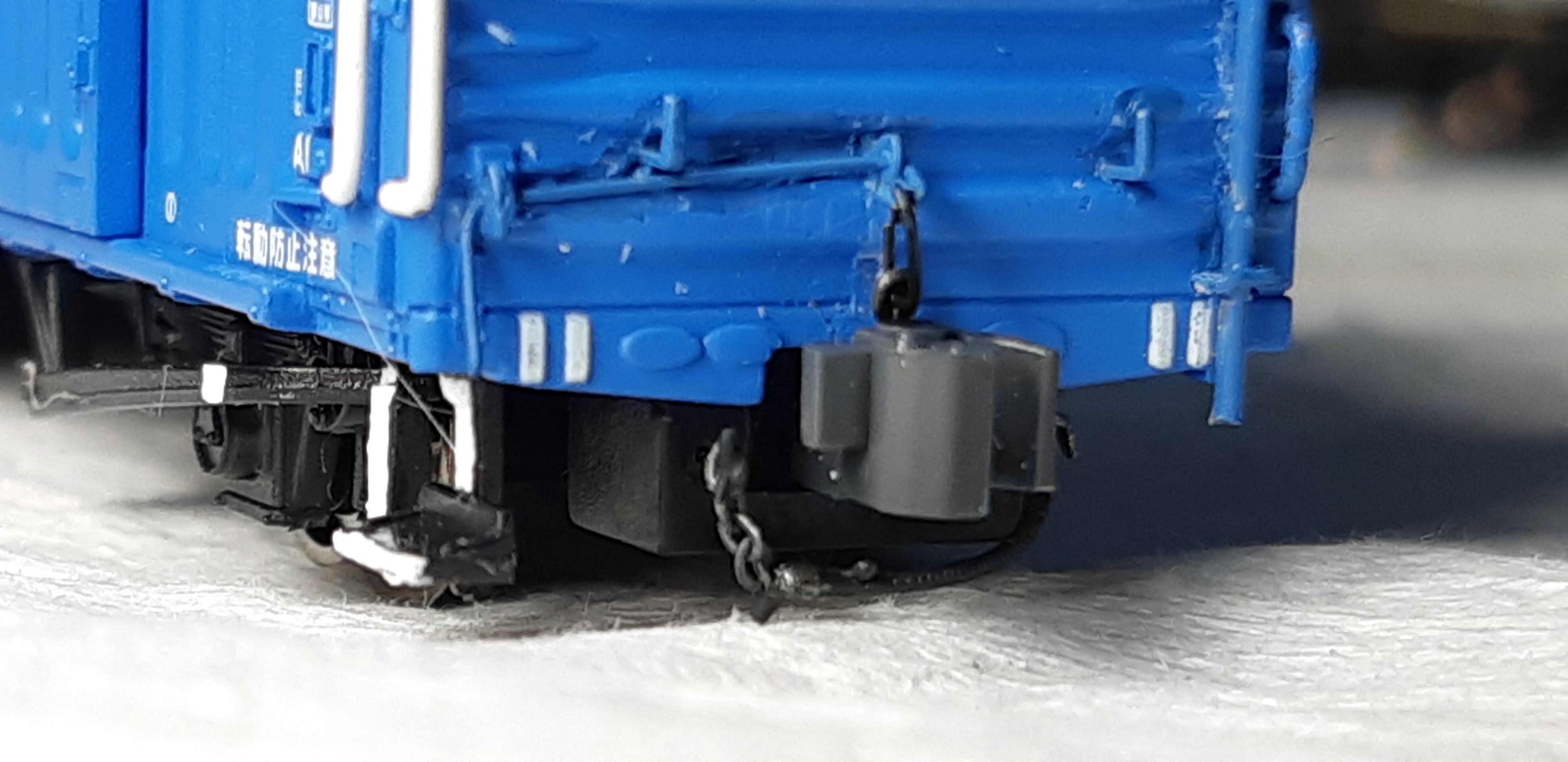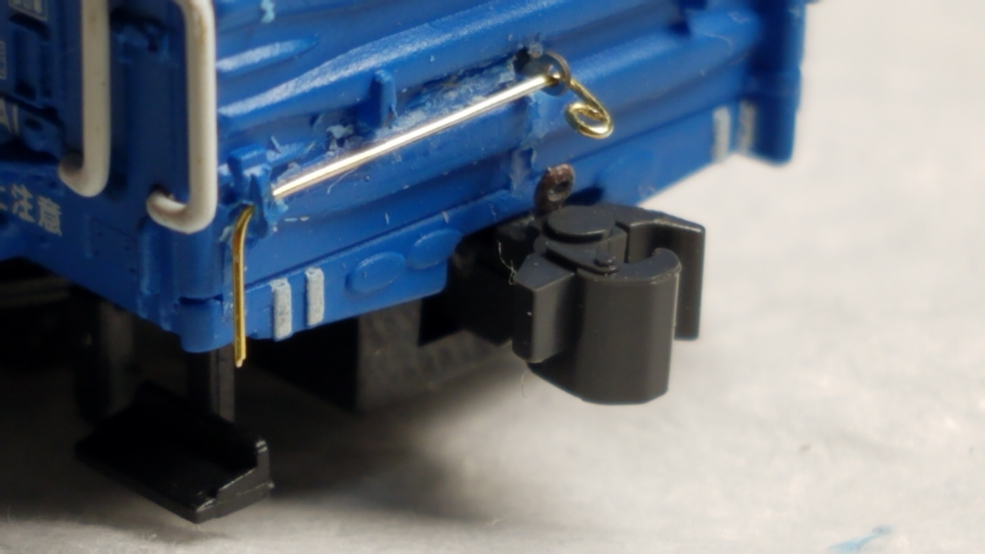 実車ですと細いチェーンのようですが、さすがにそこまで細いチェーンはないので0.15㍉ステンレスワイヤーで代用しました