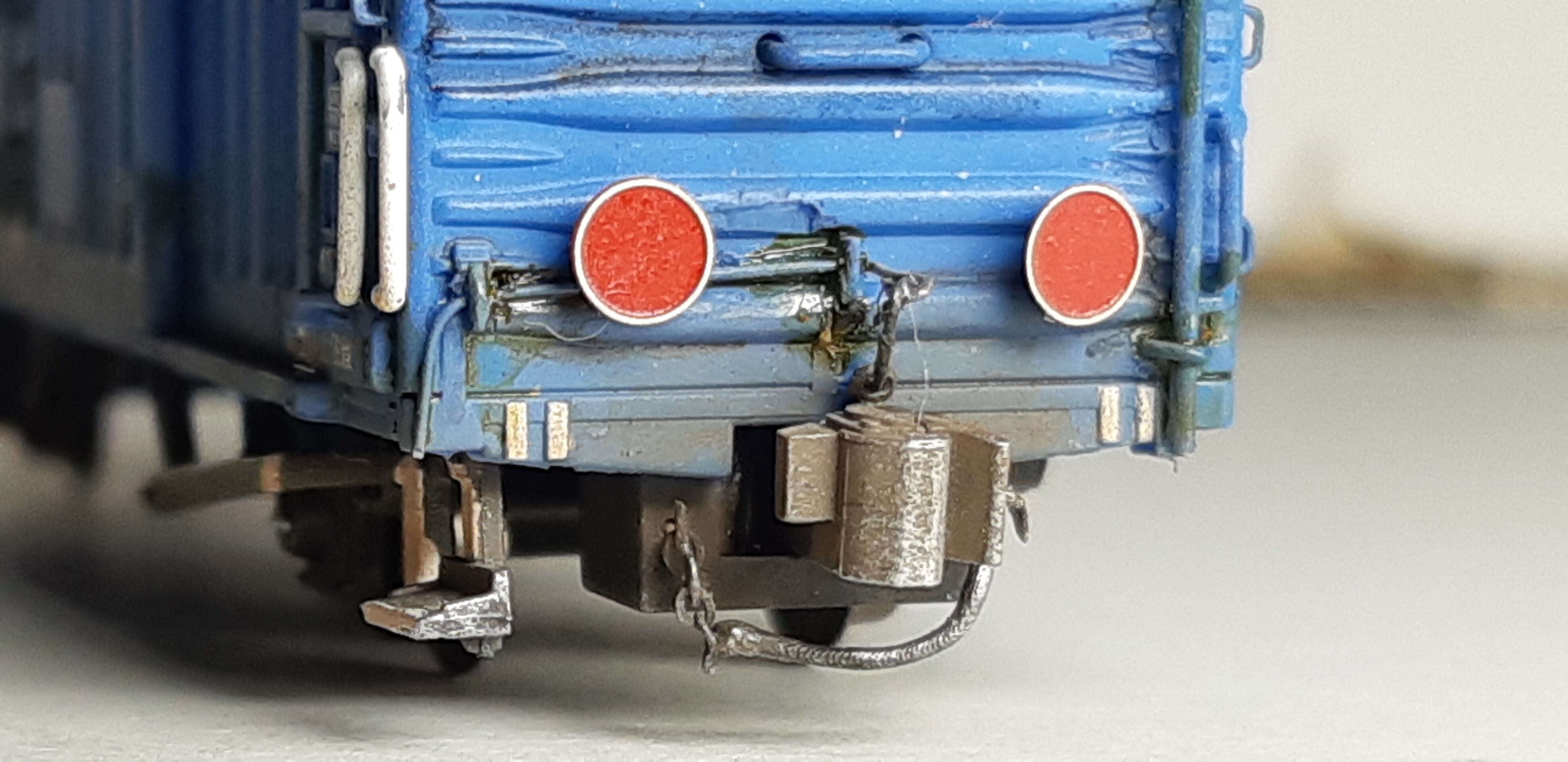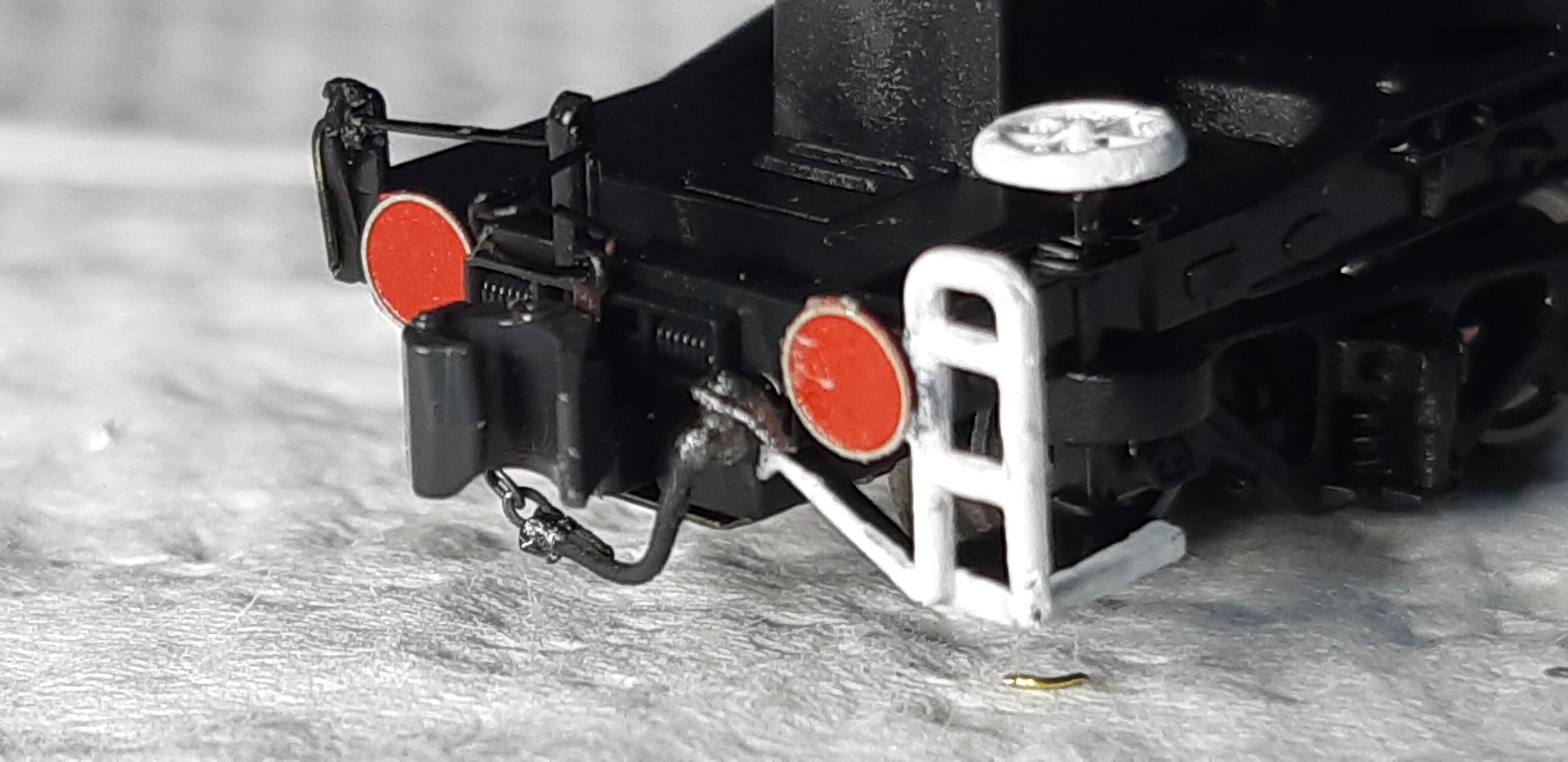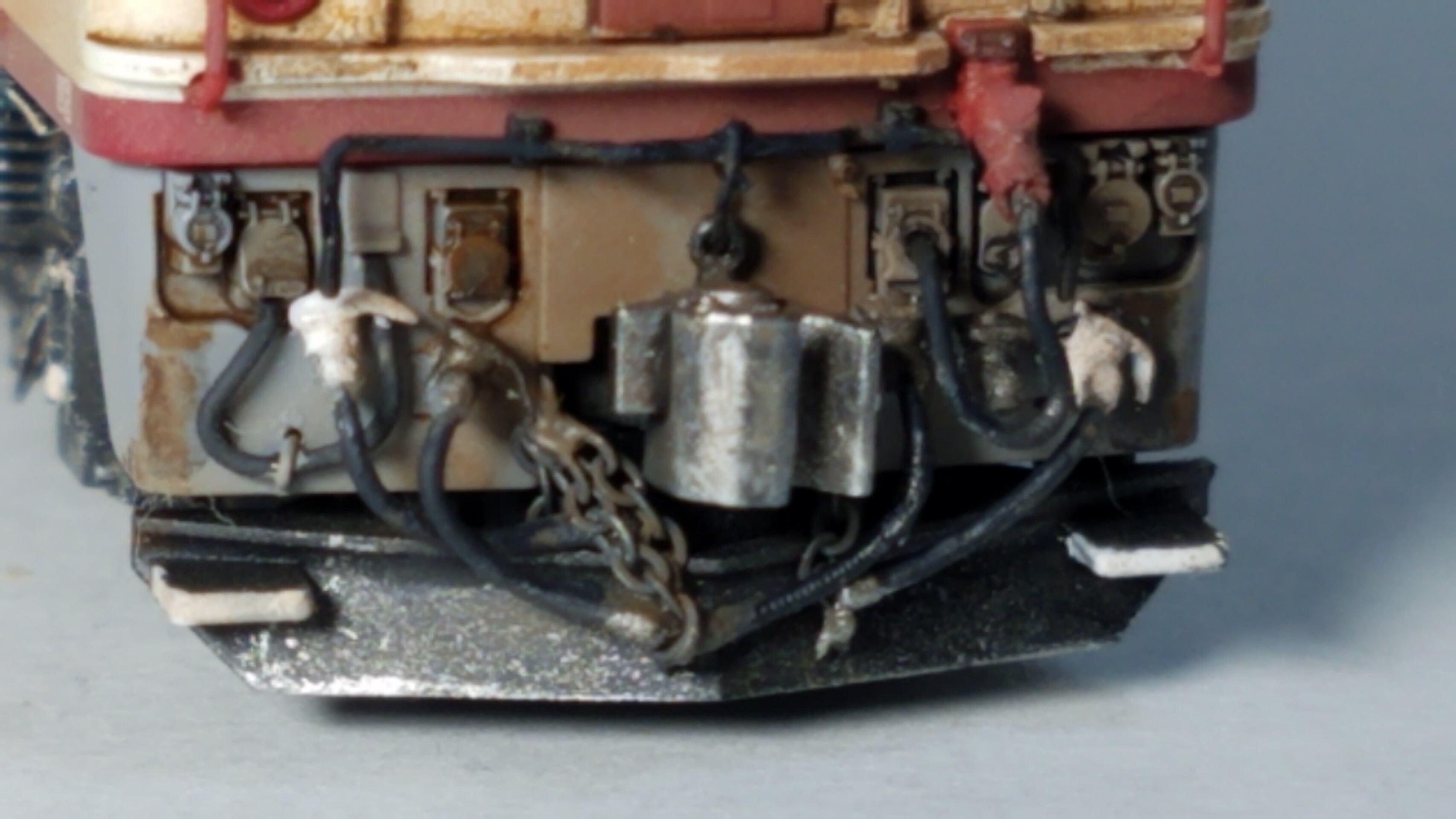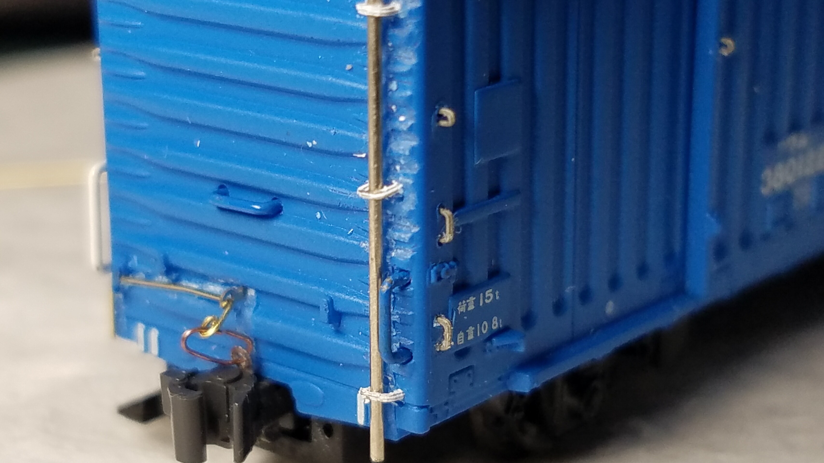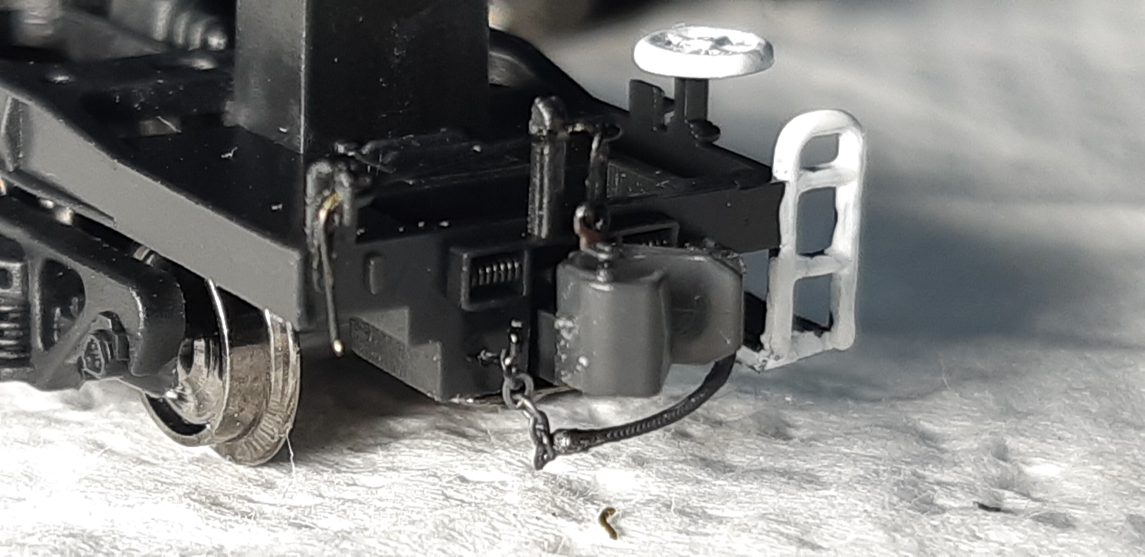 実車ですと細いチェーンのようですが、さすがにそこまで細いチェーンはないので0.15㍉ステンレスワイヤーで代用しました