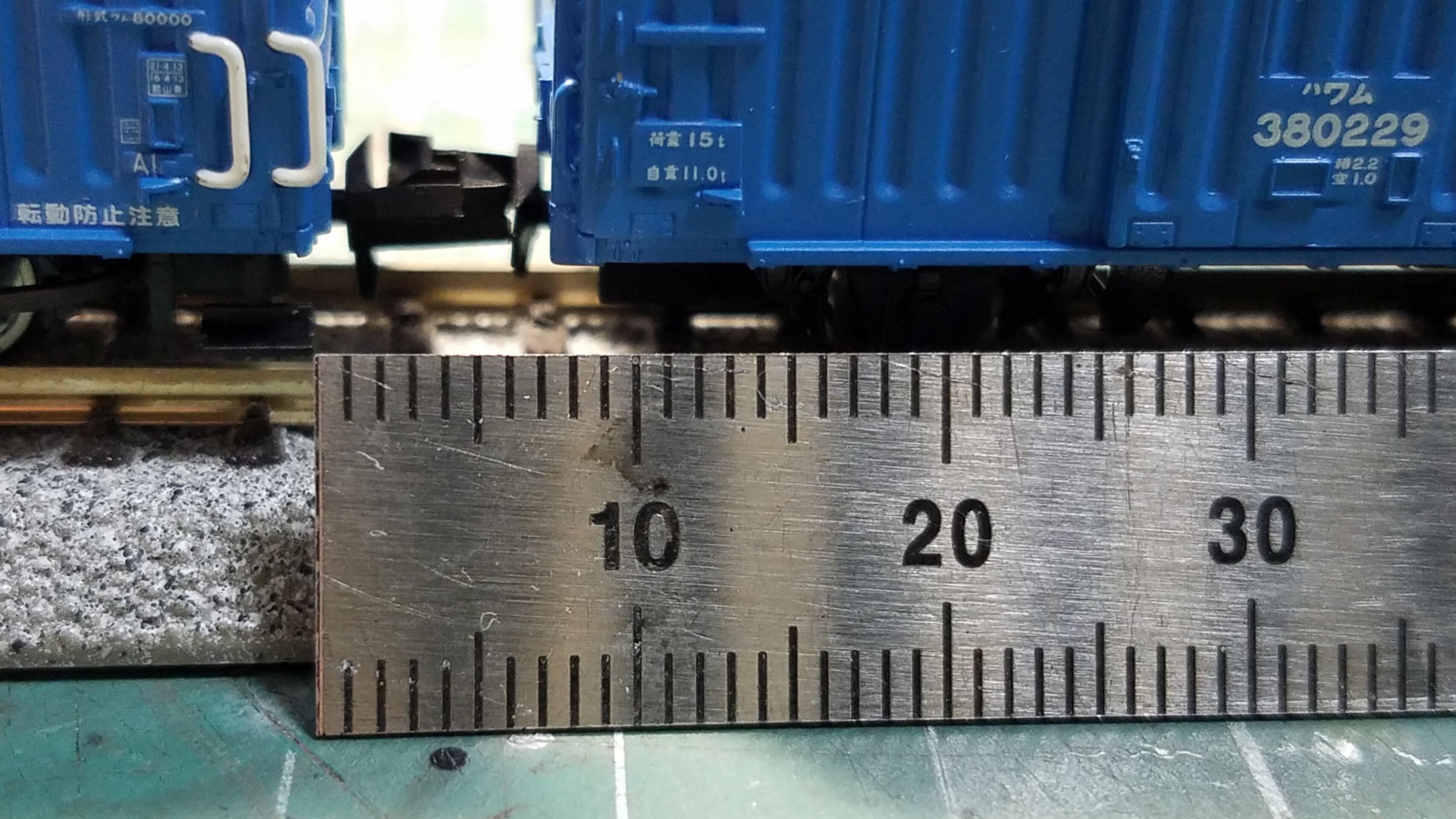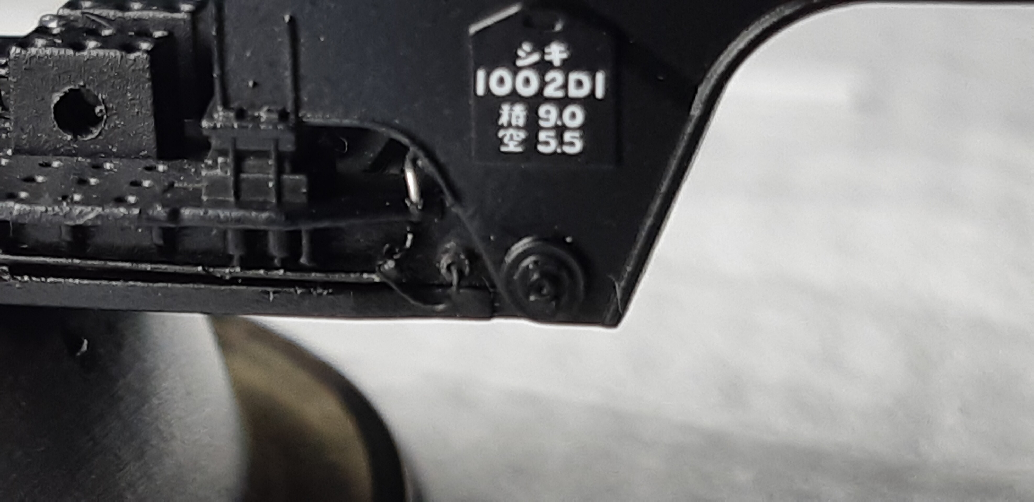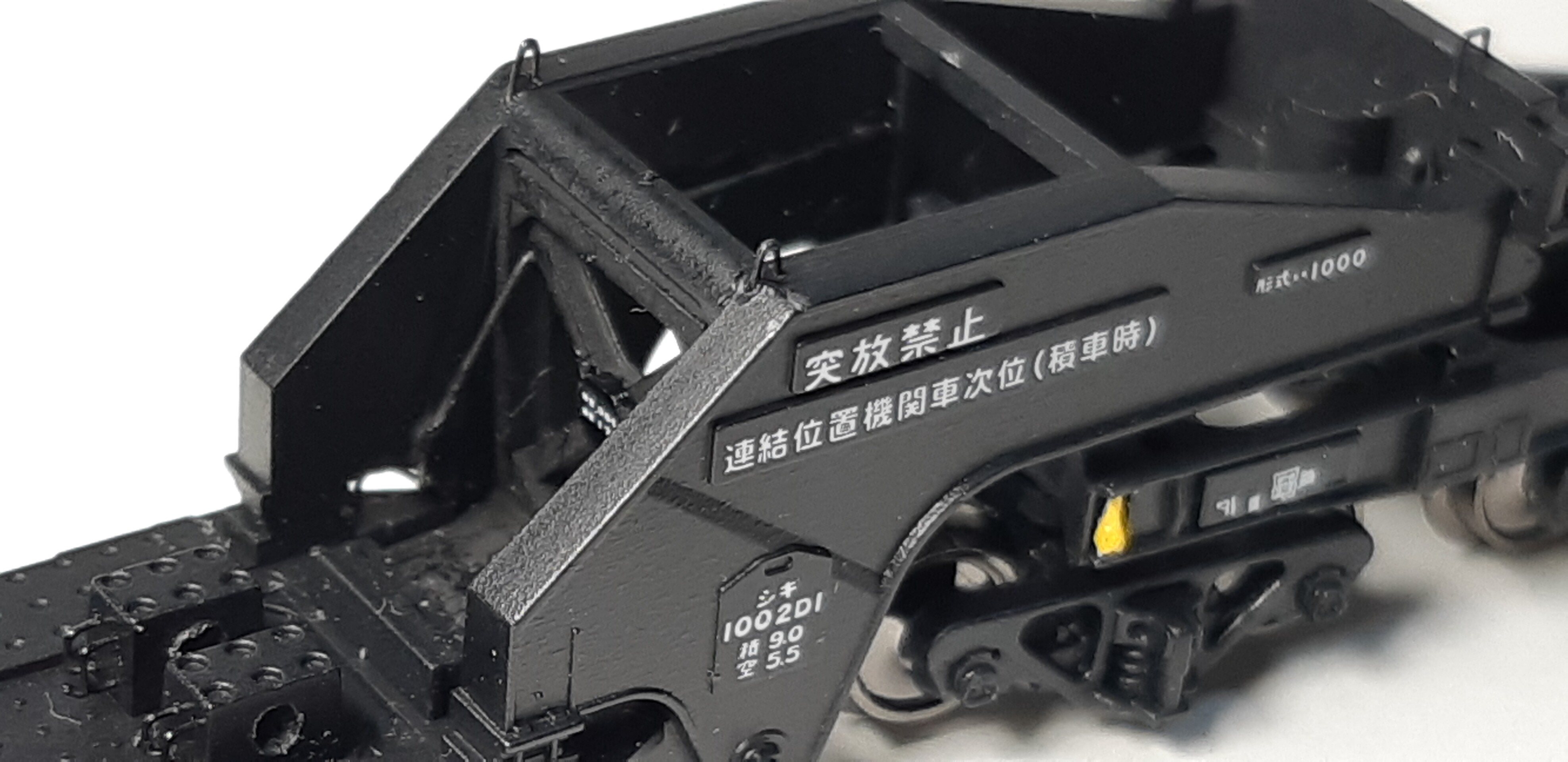 補強の梁の中央になにやら、『レール最上2500cm以下』とか、『何たら?重心の高さ』?とか注意書か書いてあるので、それらしく見えるインレタを貼ってみました