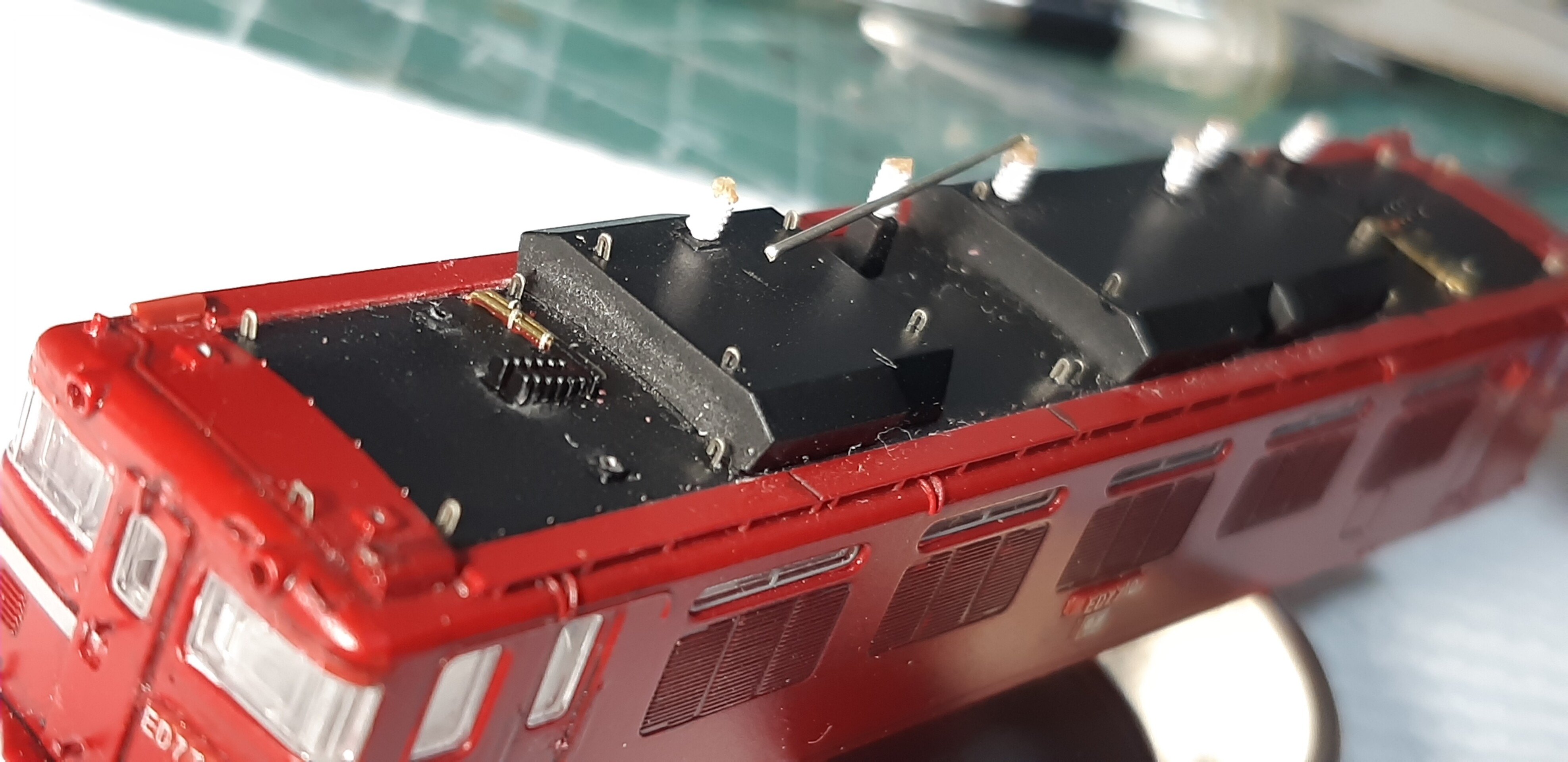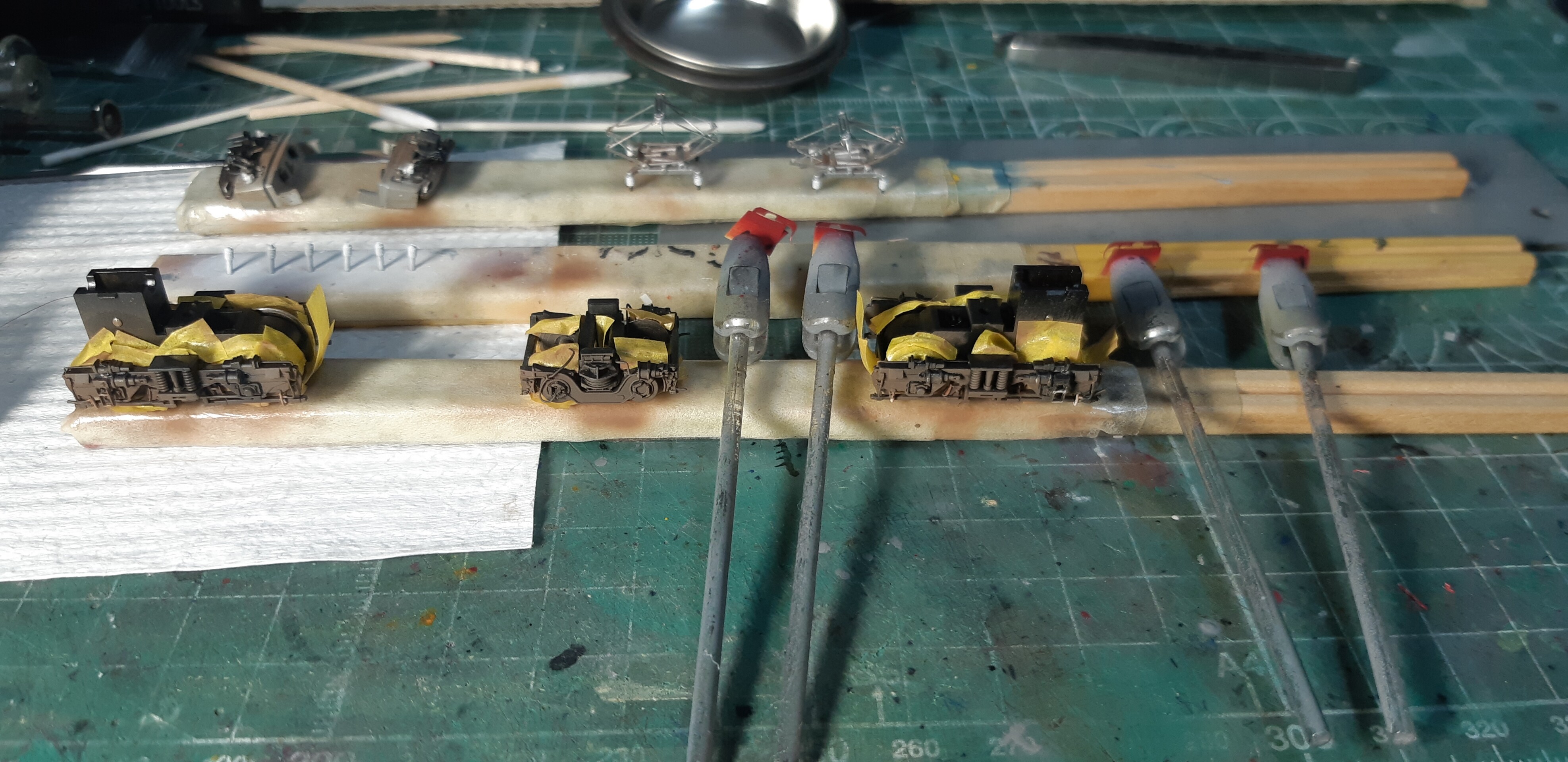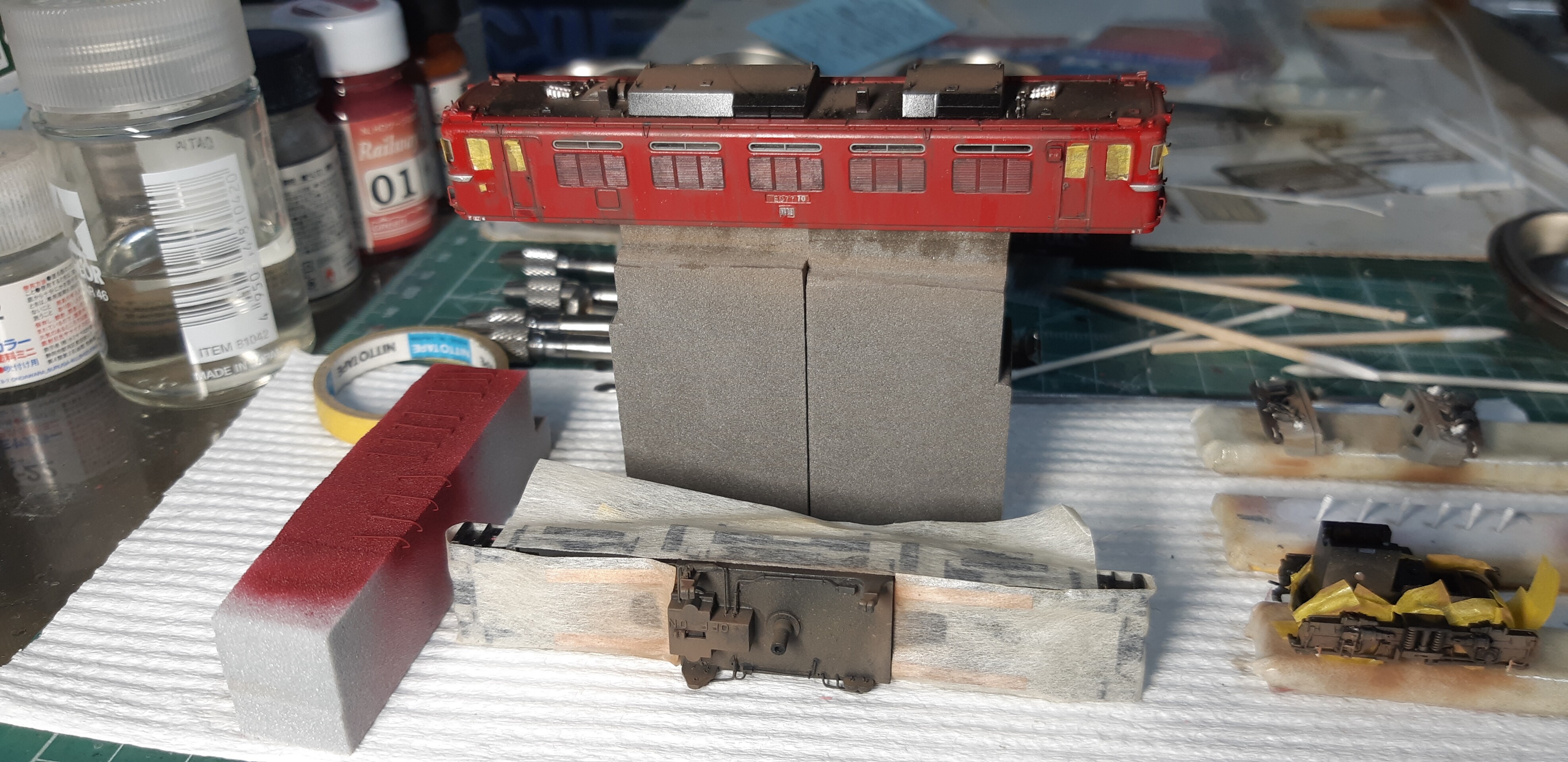 スカート周りの加工の修正と台車の追加加工、パンタグラフ、ウェザリングを少しやろうとおもいます