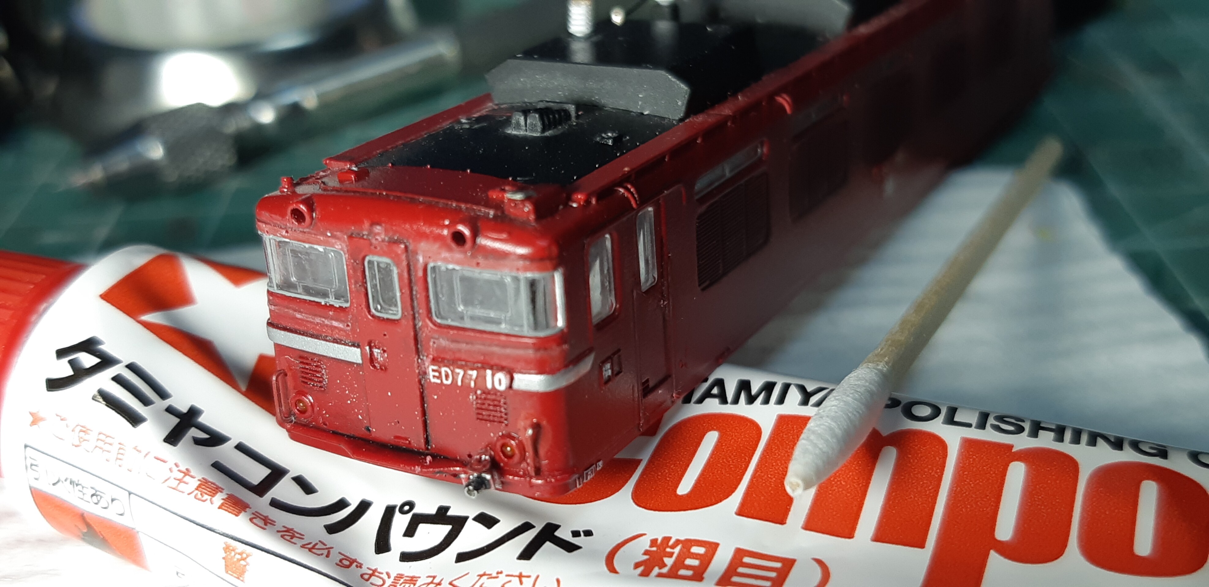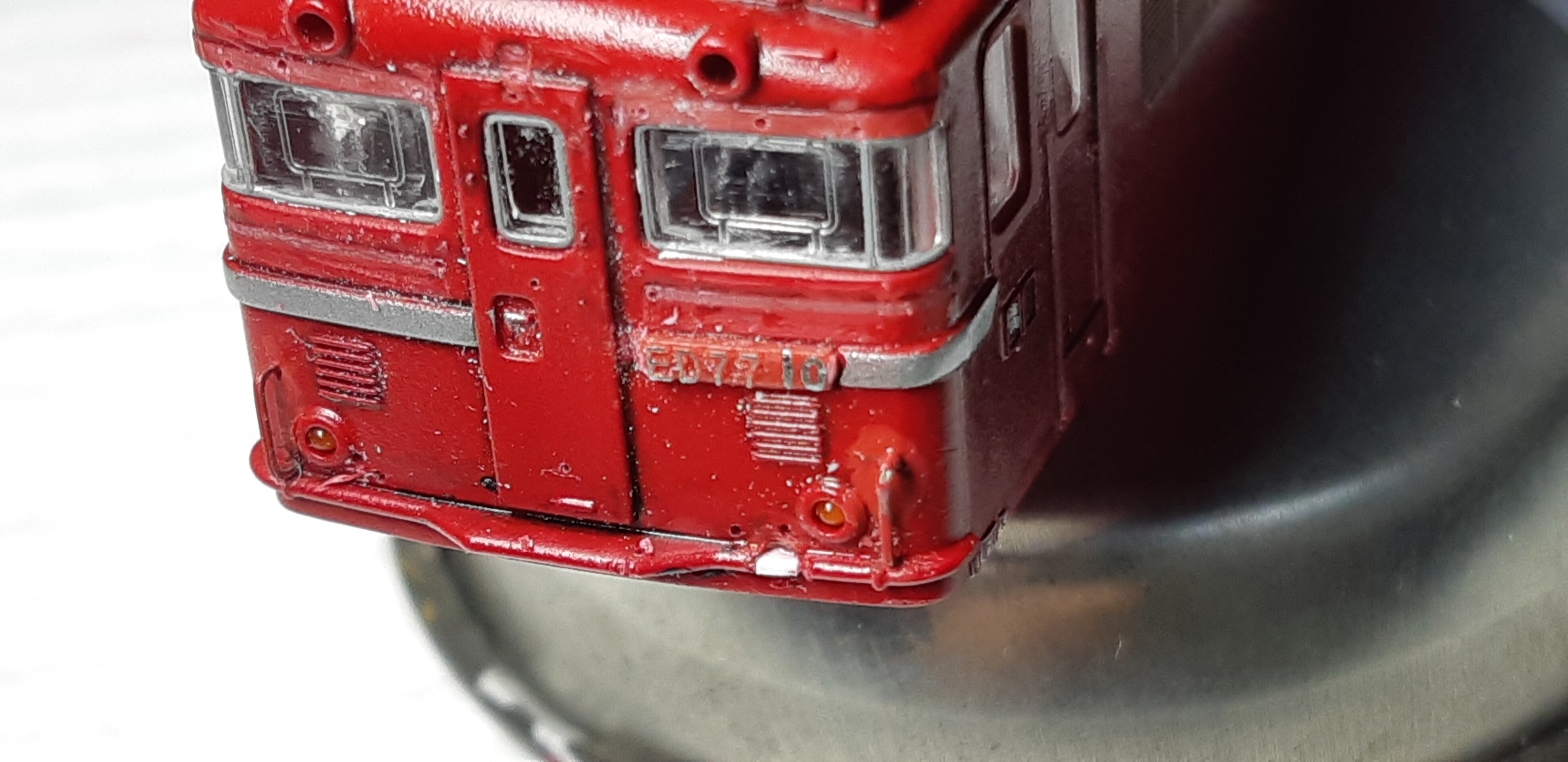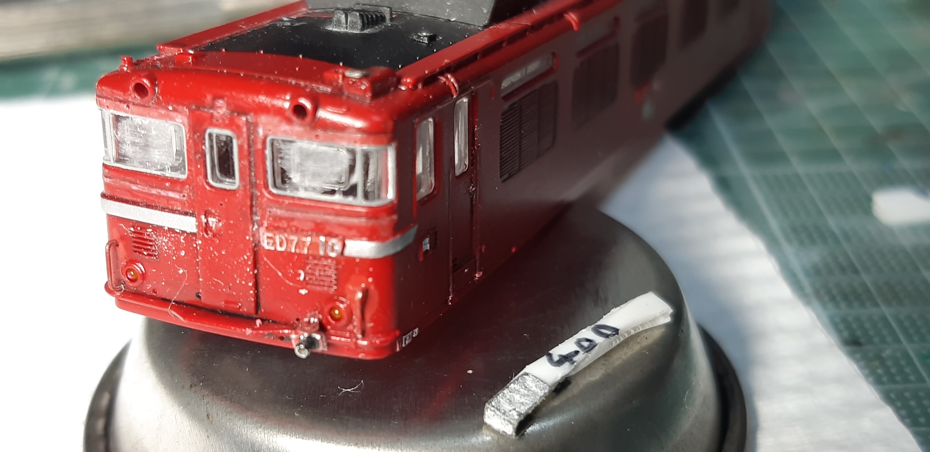 この後マルチプライマーをエアブラシで吹いて鉄道模型用カラーのステンレスシルバーを吹きました