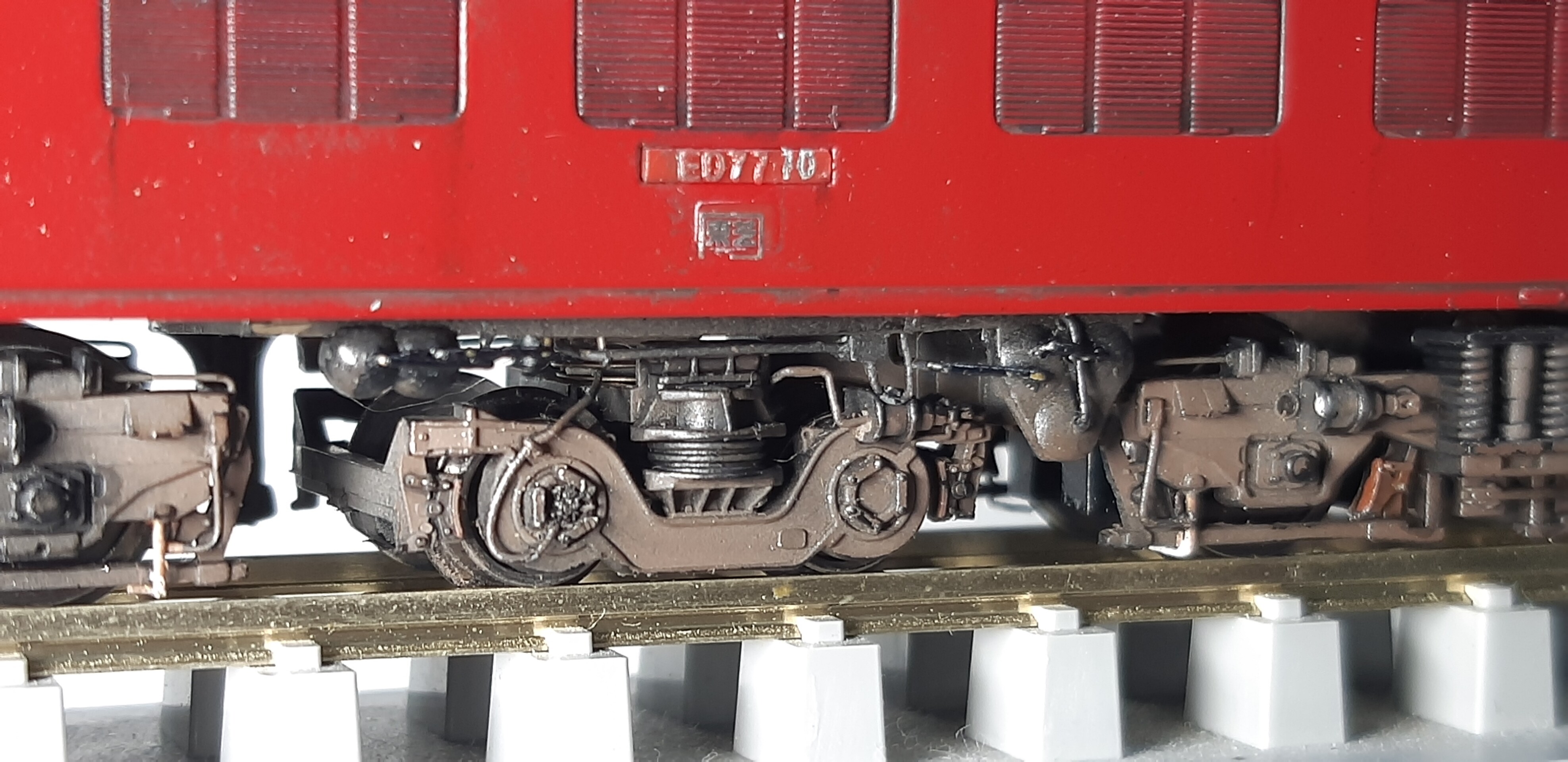 台車周りや床下機器、スカートを軽くウェザリング