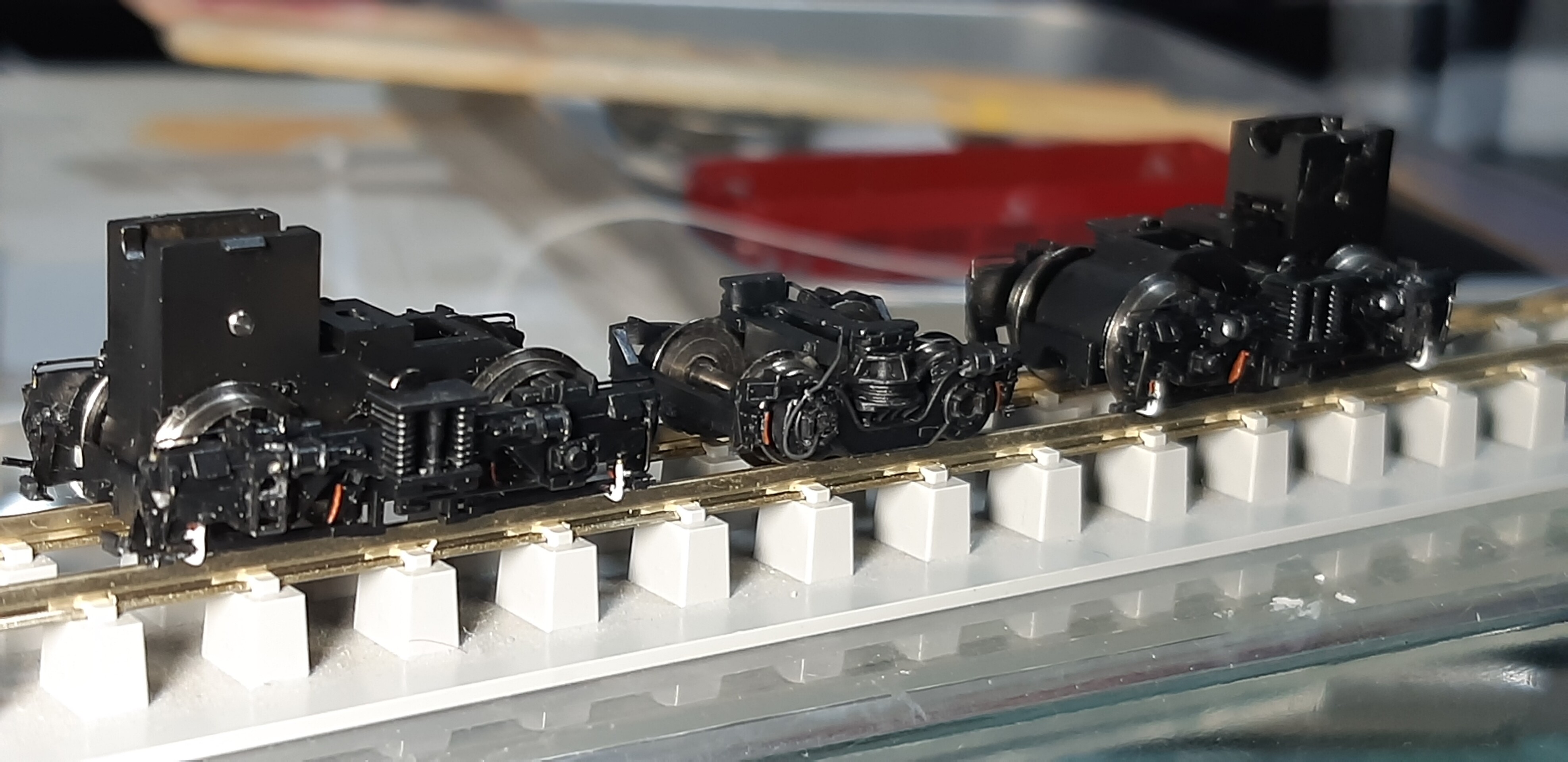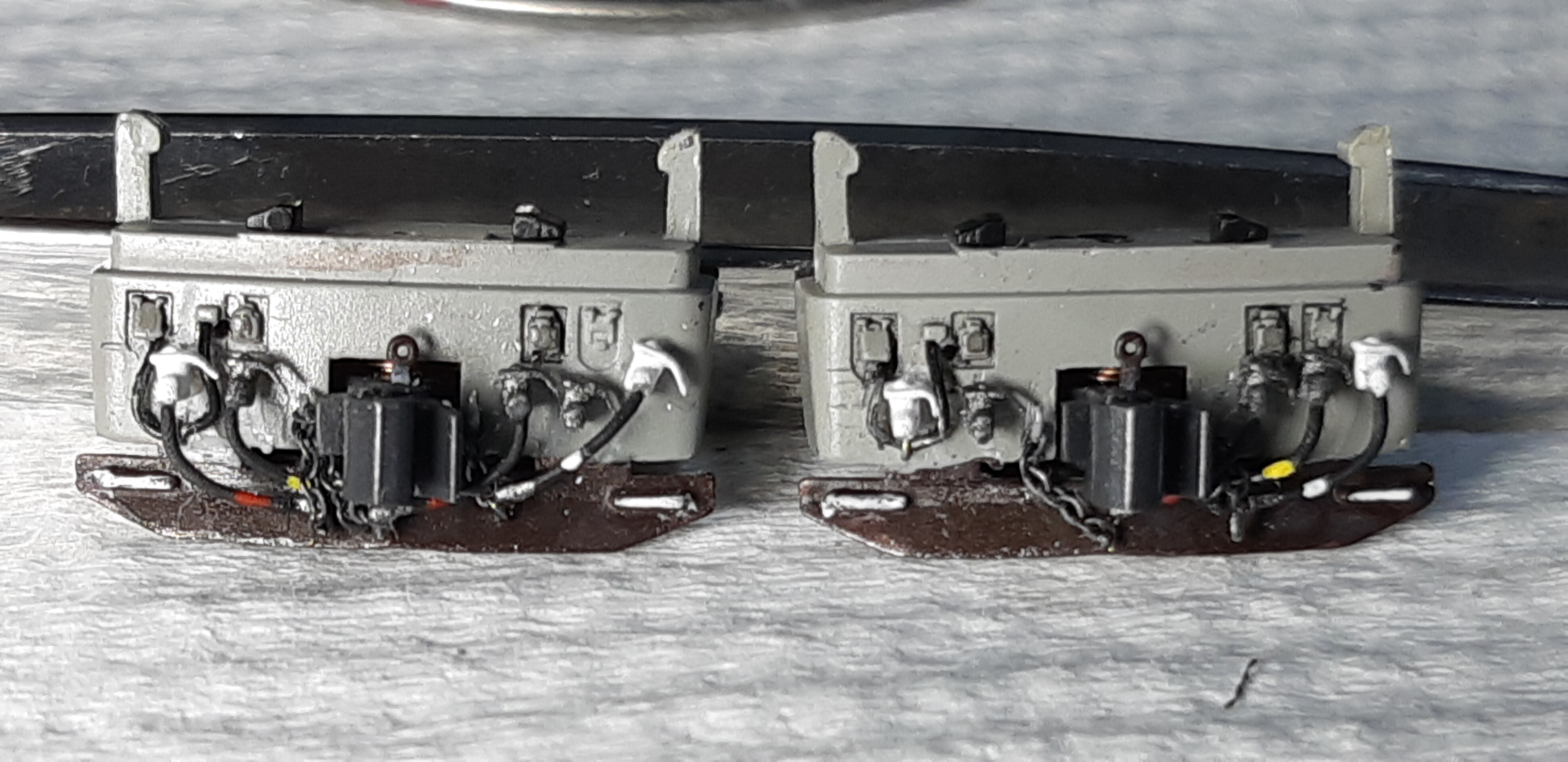 そしてプライマーが乾燥してから艶消し黒と白を使い各部に色差しして台車の加工は完成です