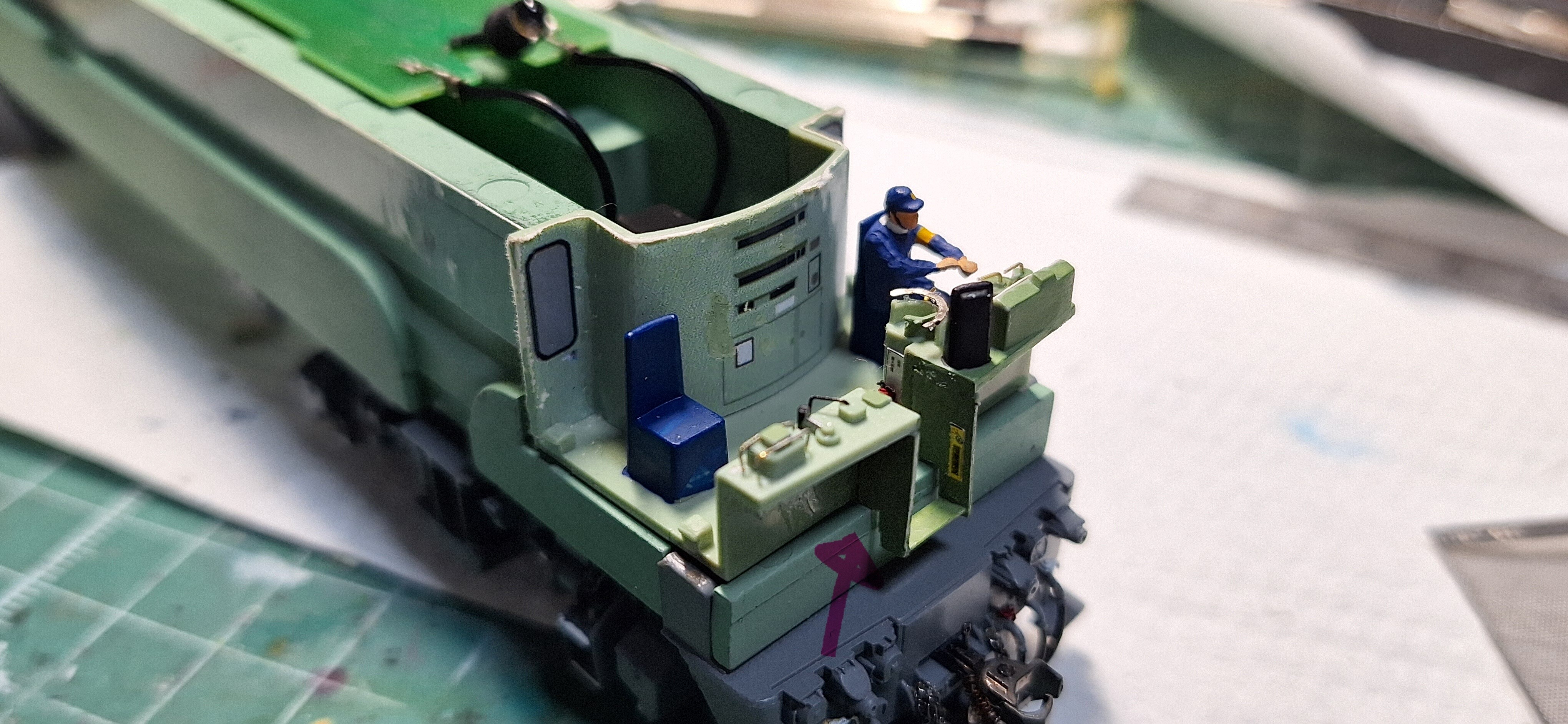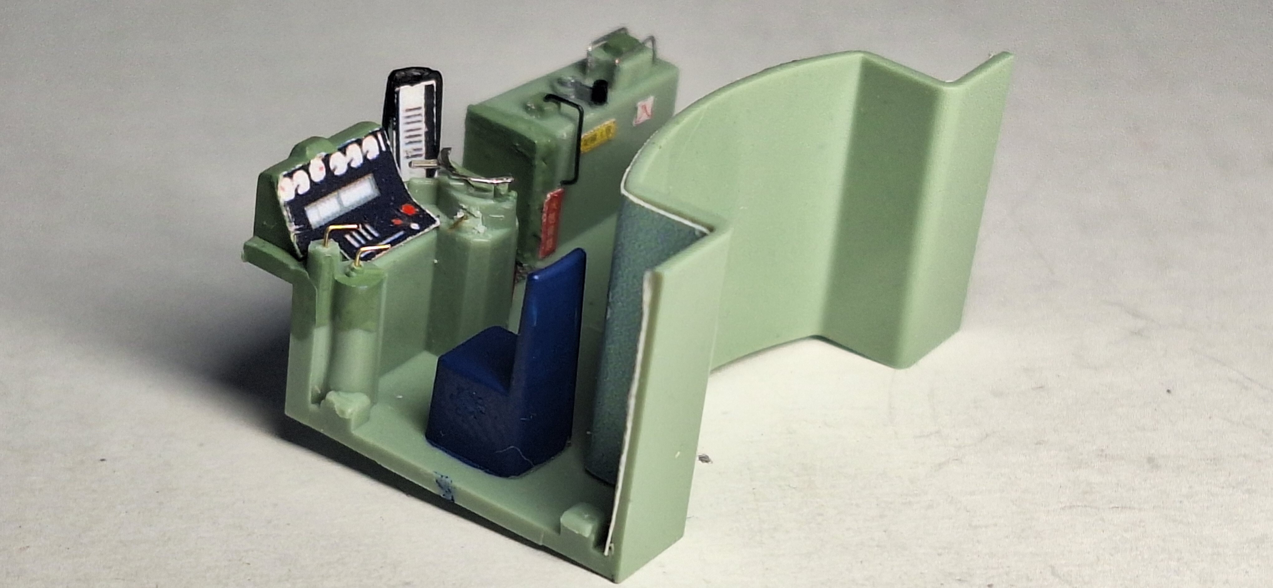 TOMIXのHO-109とか古い製品の運転台はこのタイプなのですが、最近のHO_165 とかはこの作りが薄く運転台なので、一筋縄ではいかないですね…
