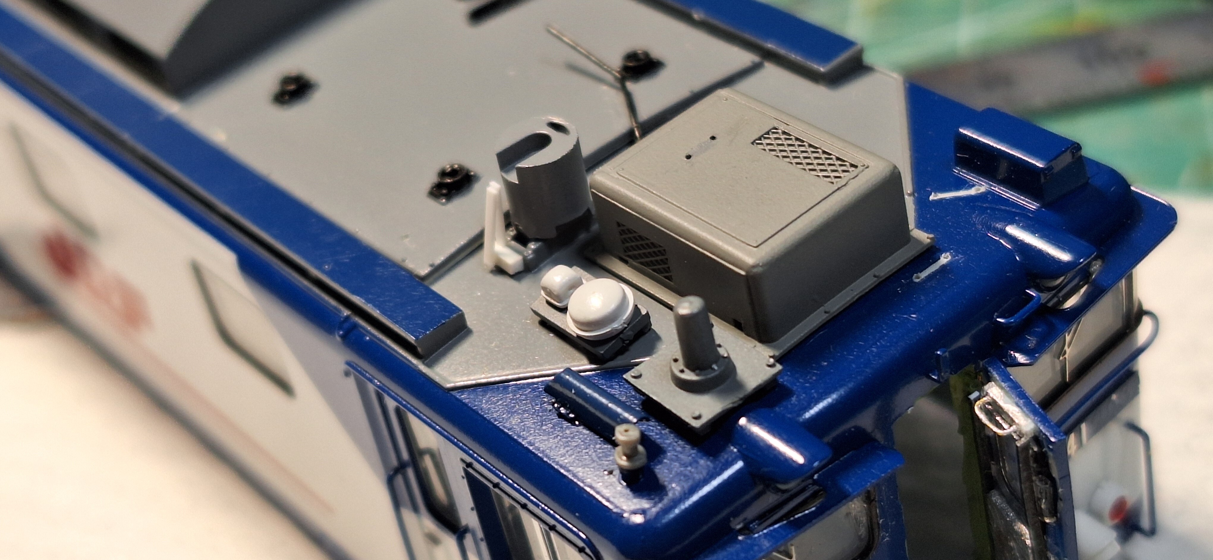 重りを排除するので、この古いタイプの運転台が手に入れば良いのですが、このパーツだけ分別では売ってないので、この薄いのを使うしかないかな…
