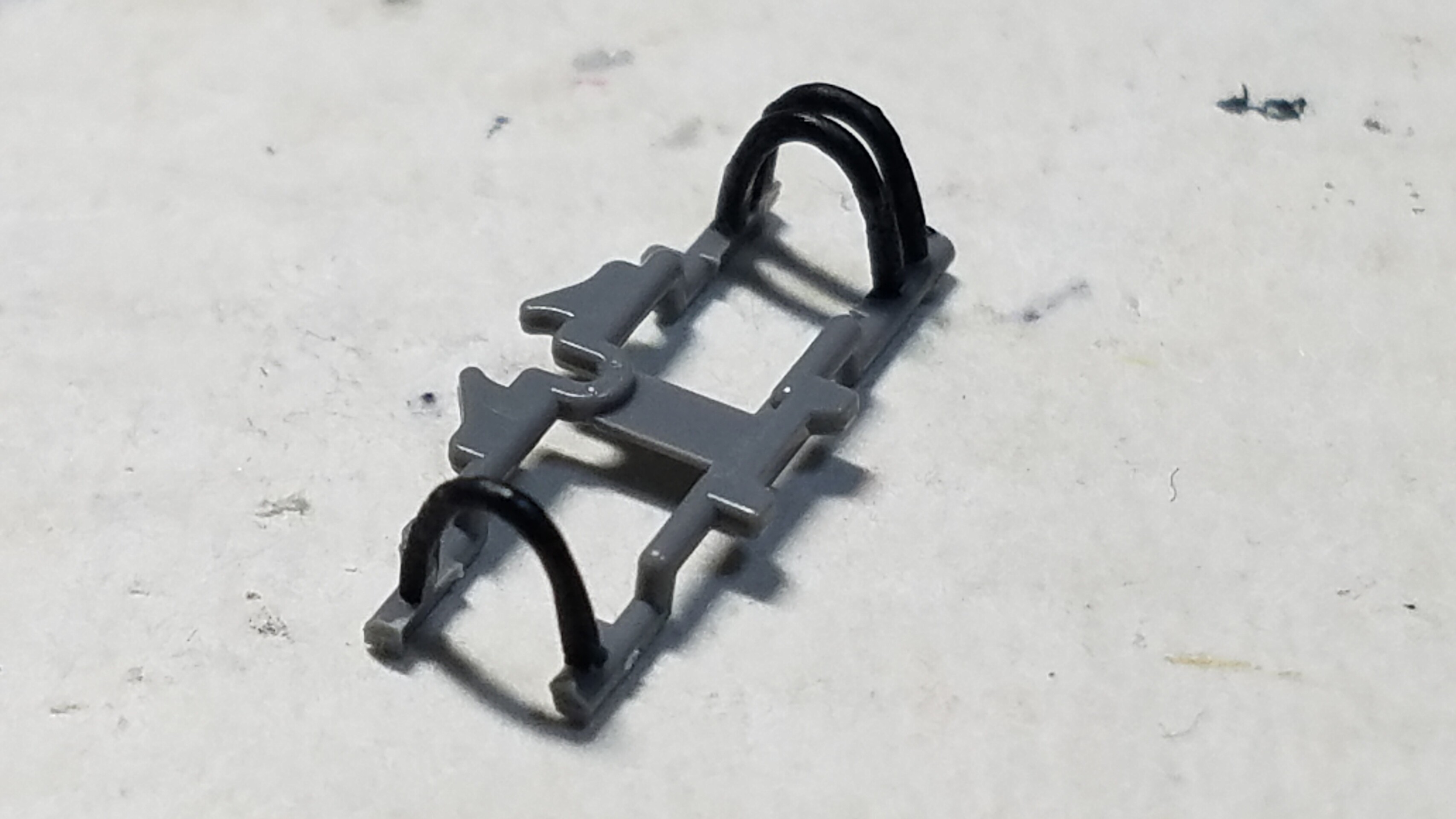 前回使った鉄道模型用カラーのねずみ色1号ですと色目が薄く感じたので